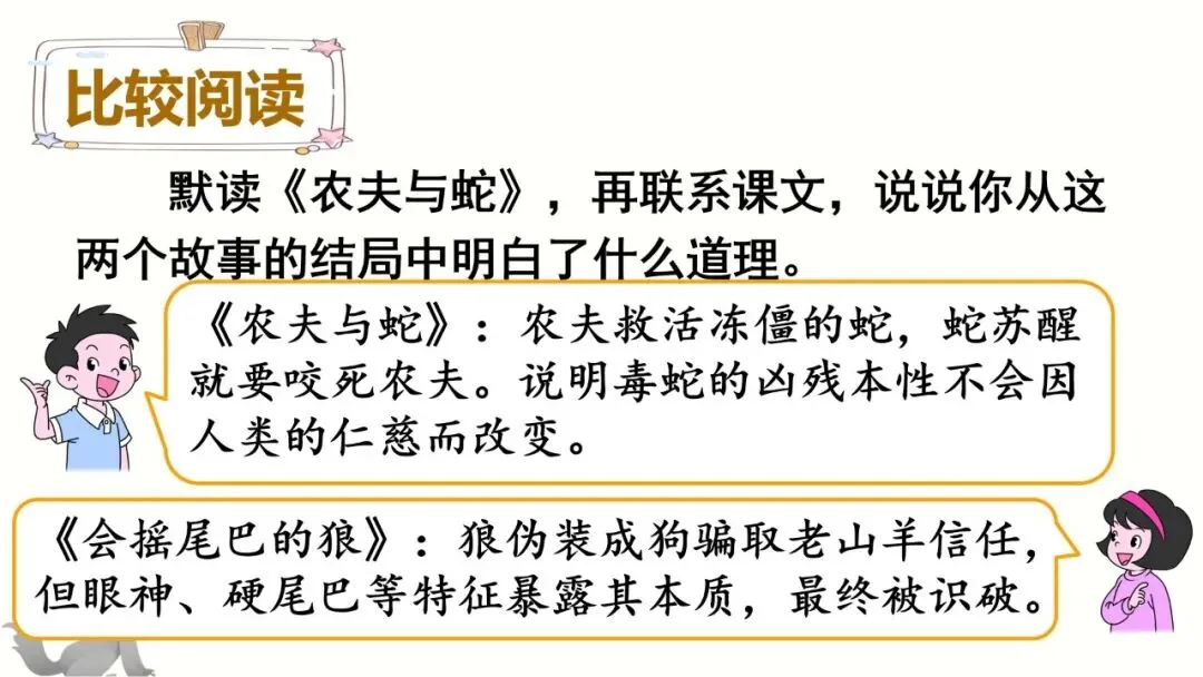 新增课文聚焦素养新增了《会摇尾巴的狼》《胡萝卜先生的长胡子》《灰雀》等课文。《会摇尾巴的狼》引导学生认清事物本质、不被虚假表象迷惑;《胡萝卜先生的长胡子》激发阅读兴趣,学习围绕核心要素展开合理想象的方法;《灰雀》则让学生学习人物对话描写、心理描写的方法,同时渗透德育教育。