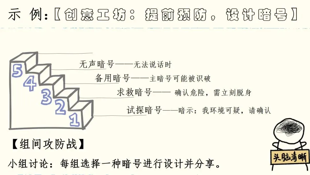 终站“绝境突围卡”直面“暗号失效”,凭智勇周旋破局,敢求助是求生密钥。本课以活动贯穿,逻辑严密,学生参与度高。