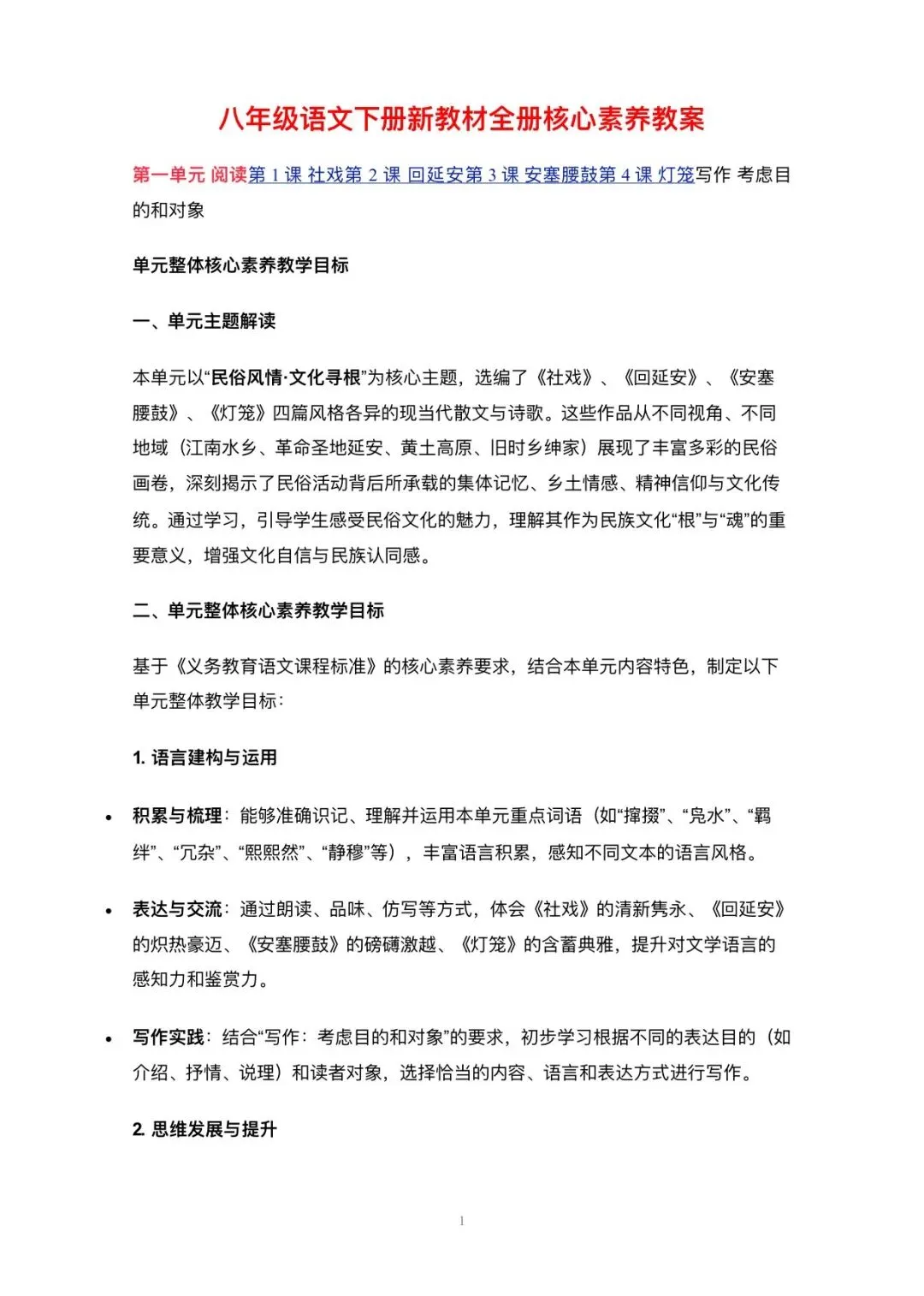 最新版八下语文核心素养教案,帮你告别备课焦虑!打印直接用!