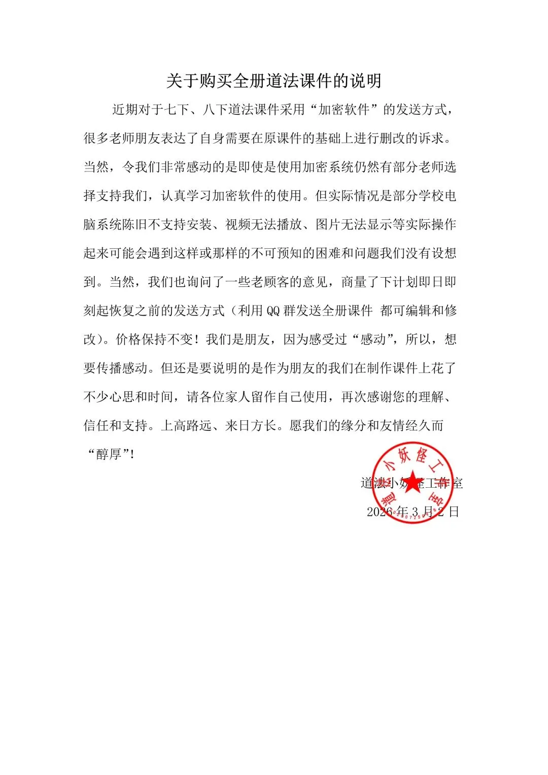 >传播感动||关于购买全册道法课件的说明