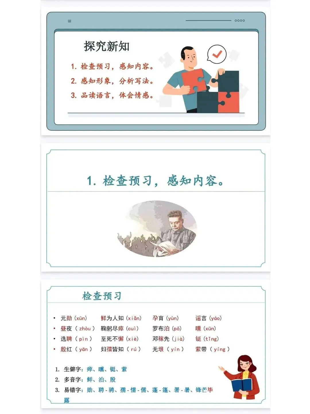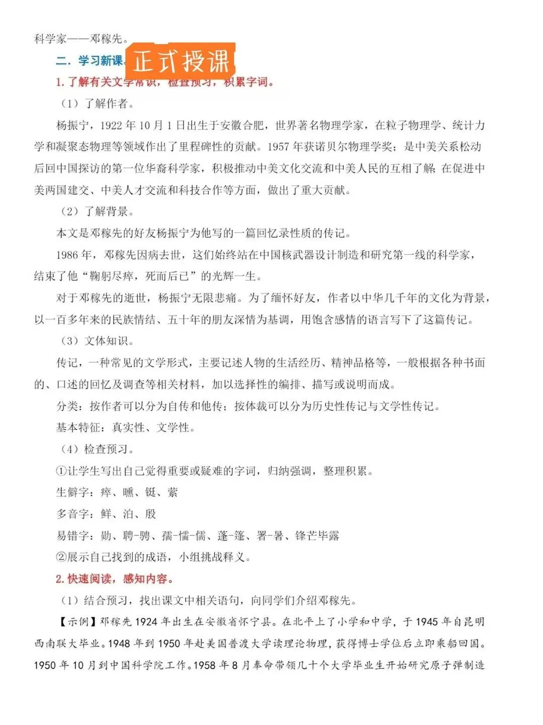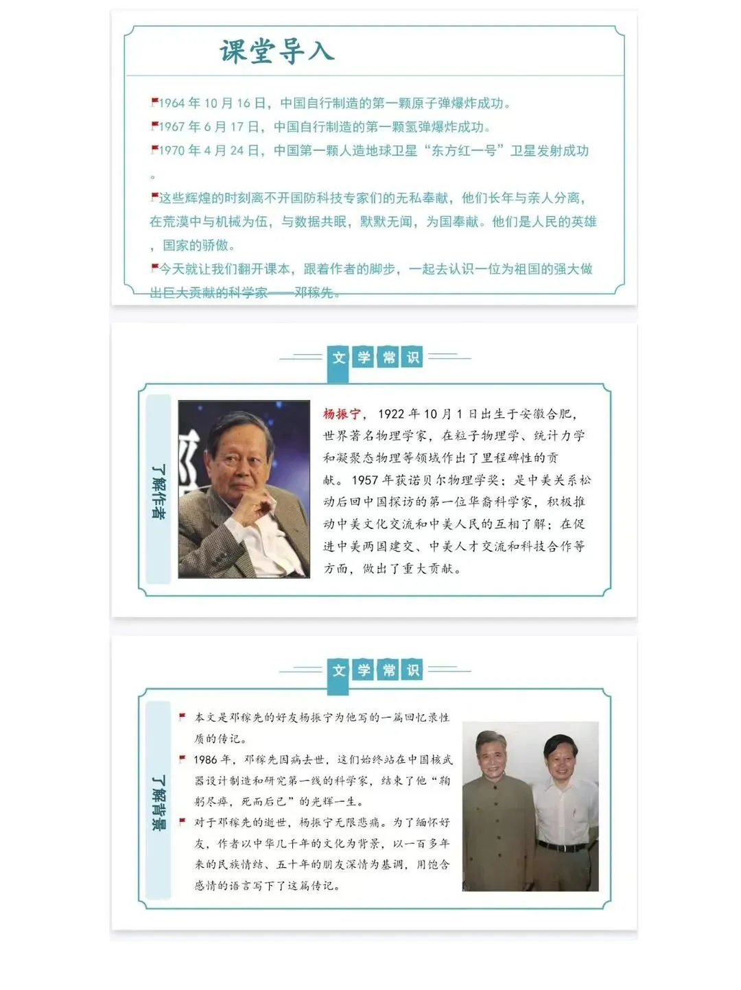 【核心素养教案+配套教案的 PPT课件】 备课效率翻倍! 新学期备课压力山大?这套七年级下册语文顶配教案,帮你从繁重的案头工作中解放出来 [一R][彩虹R]内容全覆盖 内容十分详细,从大单元教学到每一课时的设计,再到每一个思考题,从宏观到微观,教案覆盖面广! [二R][彩虹R]文件格式简练 全册教案整合在一个文件里,随需随用,下载可打印,十分实用! [三R][彩虹R]教案内容详实 七年级下册语文《邓稼先》课时教学设计部分截图展示如上,每课都配有详细的教学目标设计、教学流程,课后作业,配套的课件完全贴合教案!拿来就能用!本文内容来源于网络 版权归原作者所有、如有侵权,联系删除