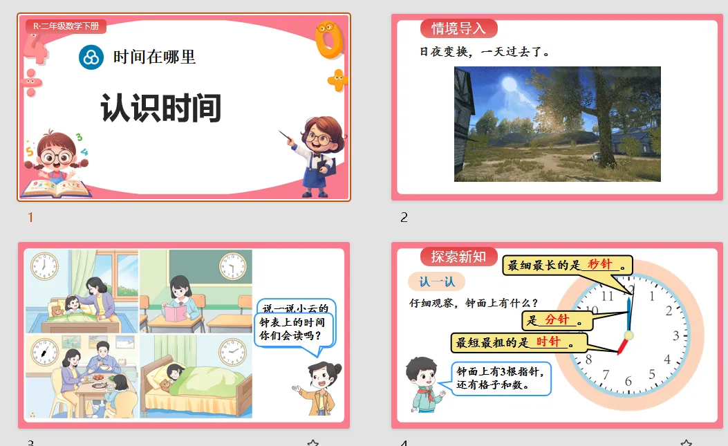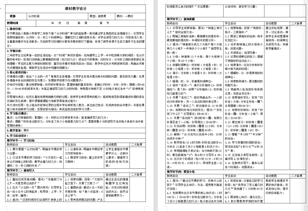 >【数学素养教案课件】新教材人教版小学数学二年级下册核心素养表格配套课件(含反思)第1课《认识时间》