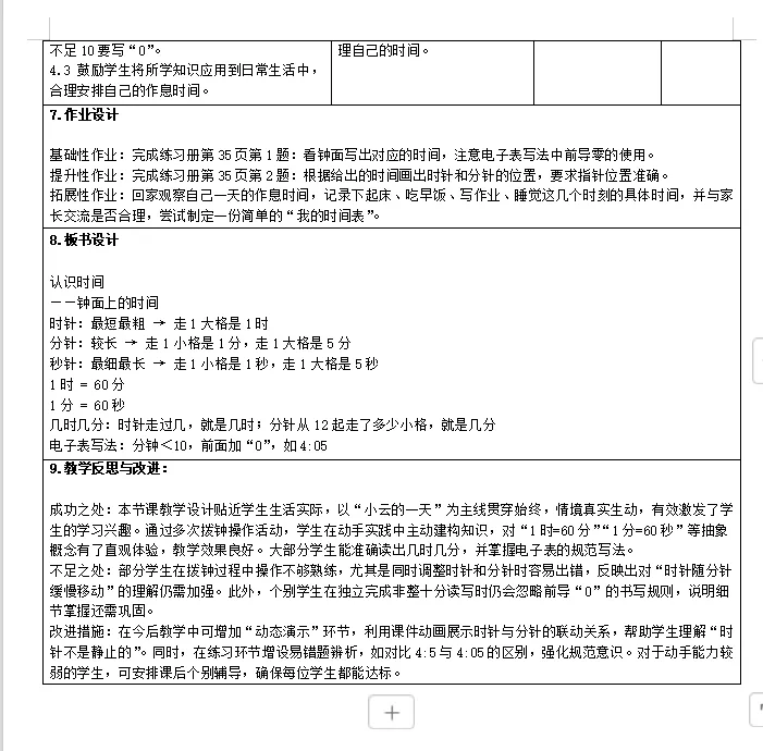 【数学素养教案课件】新教材人教版小学数学二年级下册核心素养表格配套课件(含反思)第1课《认识时间》