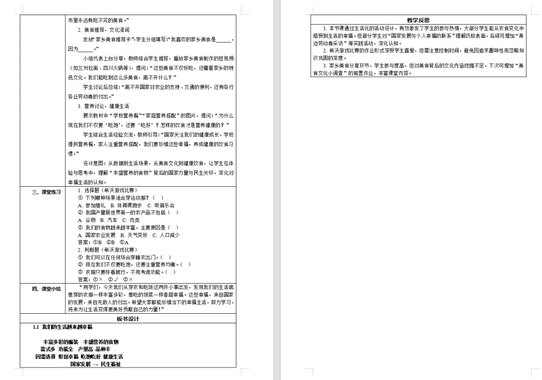 【道德与法治教案课件】新教材部编版小学道德与法治三年级下册表格配套教案(含反思)第1课《我们的生活越来越幸福》