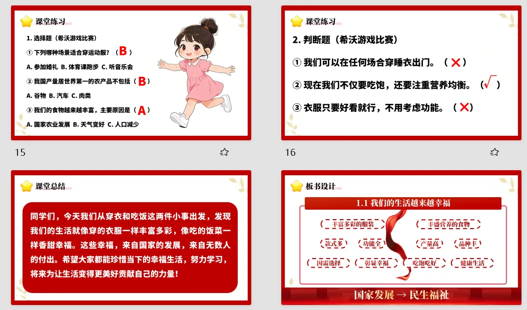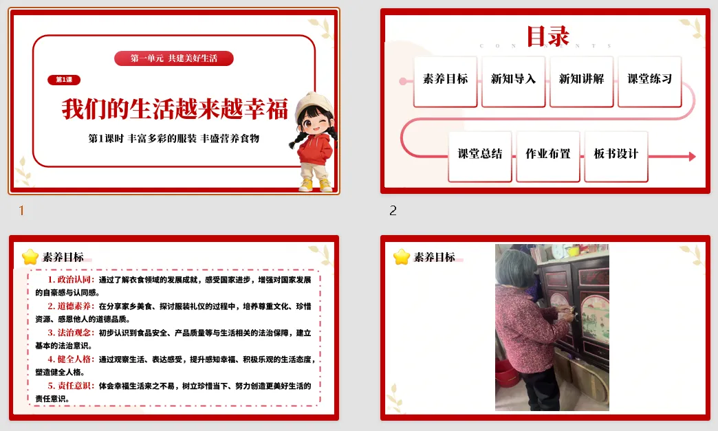【道德与法治教案课件】新教材部编版小学道德与法治三年级下册核心素养表格配套课件(含反思)第1课《我们的生活越来越幸福》