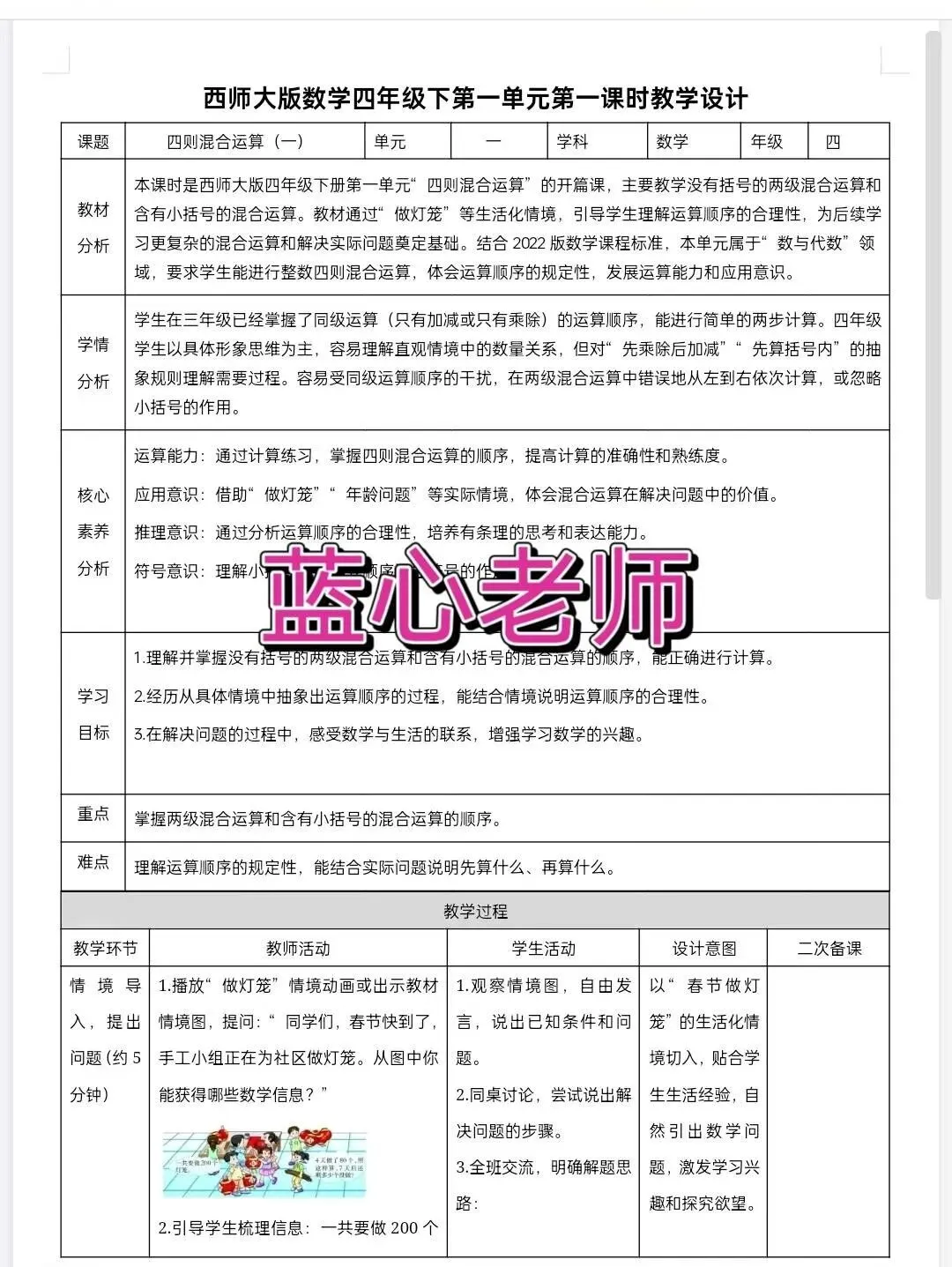 【数学核心素养教案】新教材人教版小学数学三年级下册教学计划核心素养表格式教学设计带反思第1课《》