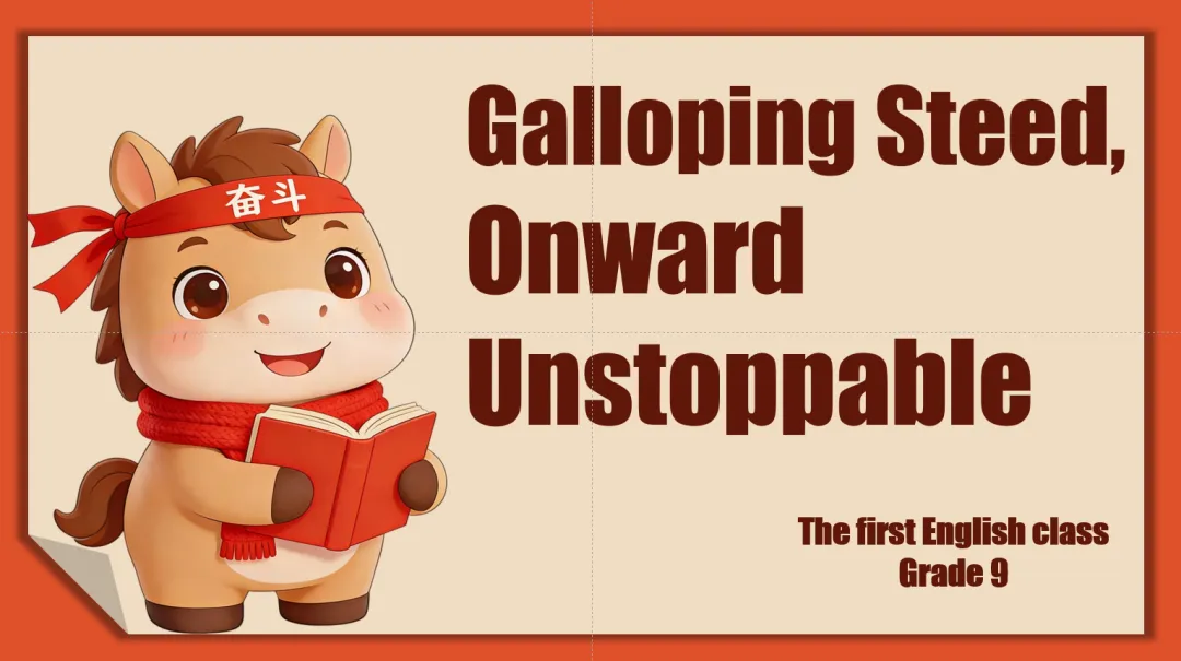 昨天早上脑子里就有了对开学第一课的构想,主要源于我想到的一句话:May you be a dark horse in the Zhongkao. 再加上今年是马年,这个黑马的祝福就很有意境。不过我这两天是啥也不想做,昨天来到了学校这边,虽然还没有正式开学。身体是懒得动,但是脑袋里想了很多,资料也搜集了一些。今天早上起来还是决定把脑子里的想法变成现实。不过我也偷了一点小懒。把我去年做的开学第一课课件的内容用了一点点,嘿嘿~不冲突嘛。