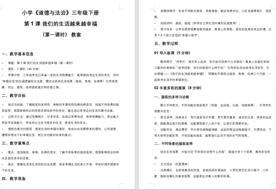 【道德与法治教案课件】新教材部编版小学道德与法治三年级下册文本配套教案第1课《我们的生活越来越幸福》