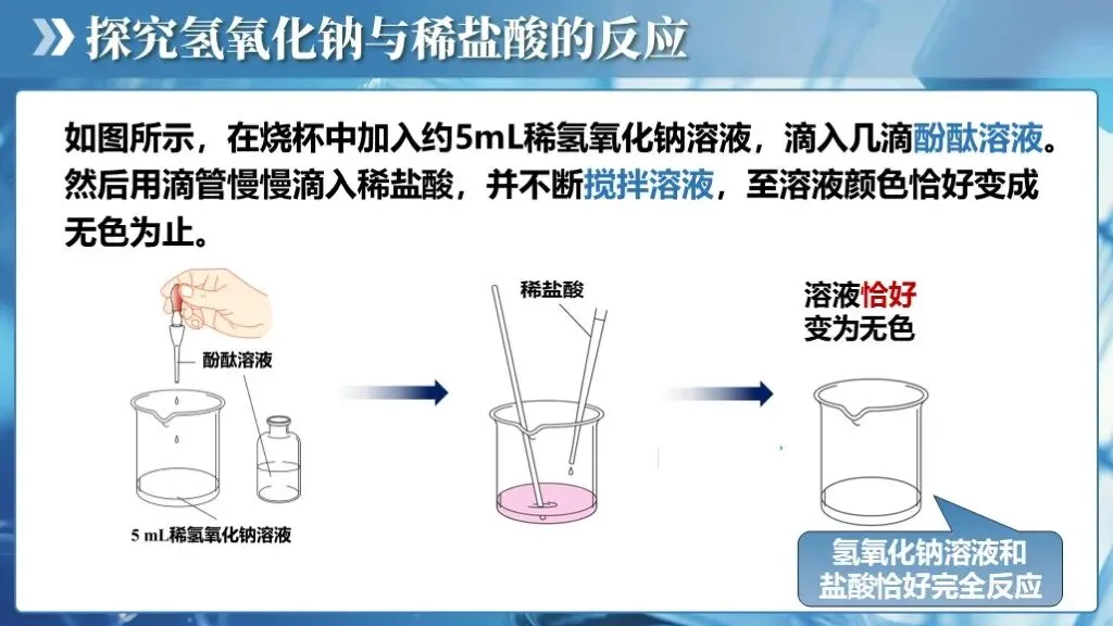 1.通过实验探究,认识酸和碱的中和反应,学会运用指示剂判断反应的发生。