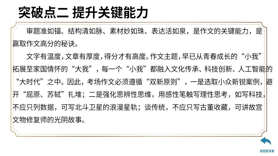 【26届高考语文二轮专题复习】写作(1.作文审题立意,2.提升关键能力,3.打造作文出彩点)课件