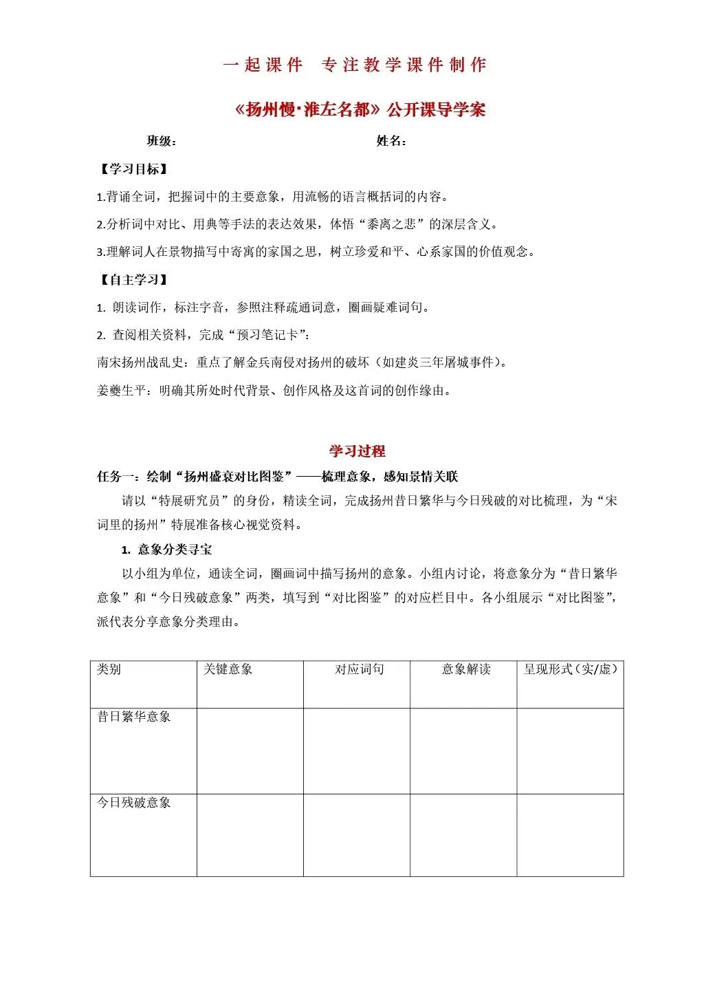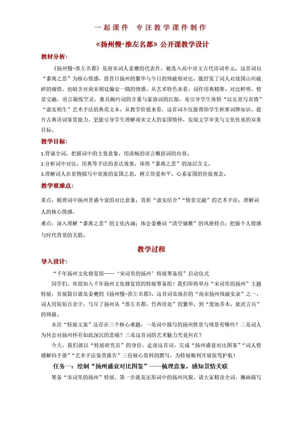 >【名师精品公开课】|《扬州慢》:课件+教学设计+导学案