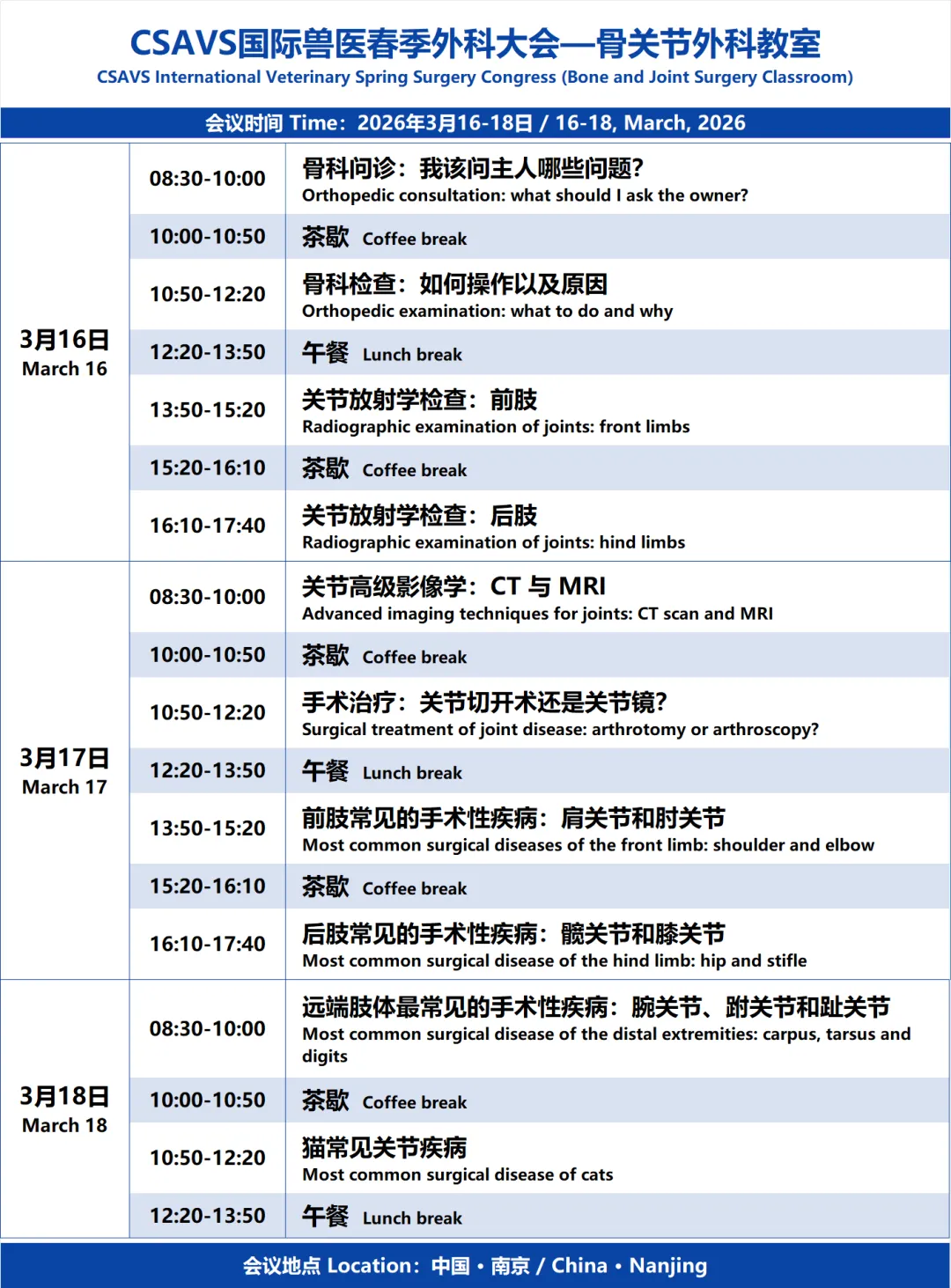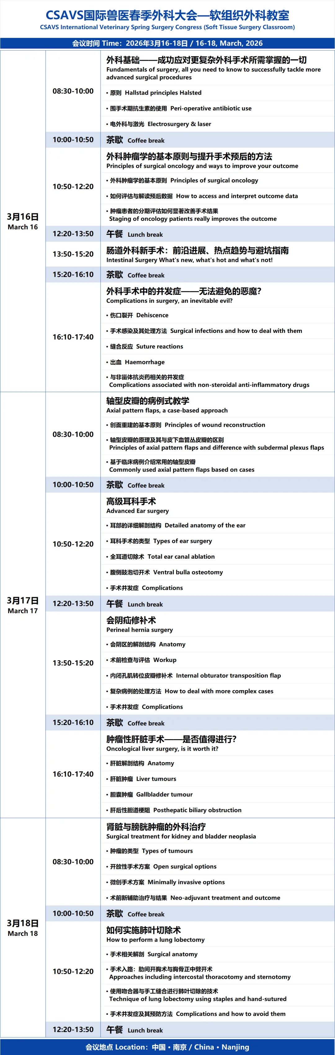 这意味着:距离3月16日CSAVS春季外科大会开幕,真的不远了。