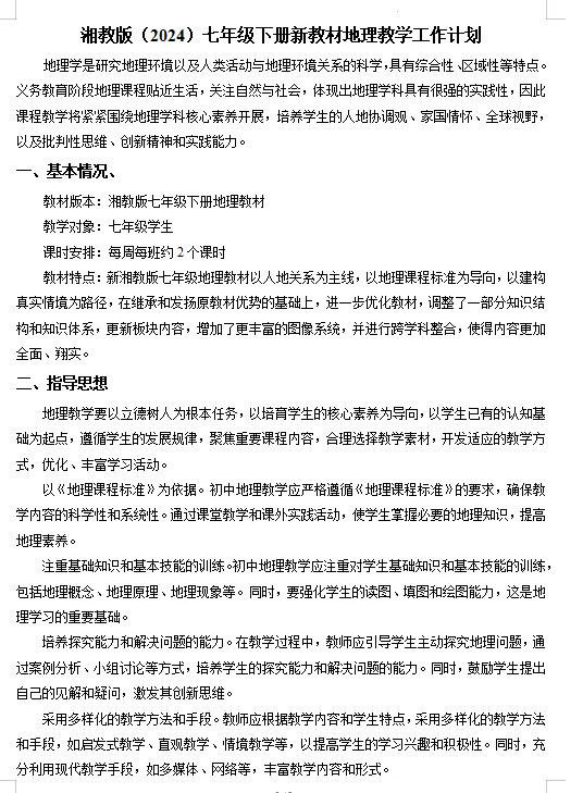 2026春新版人教美术7年级下册教案+教学计划【可下载打印】
