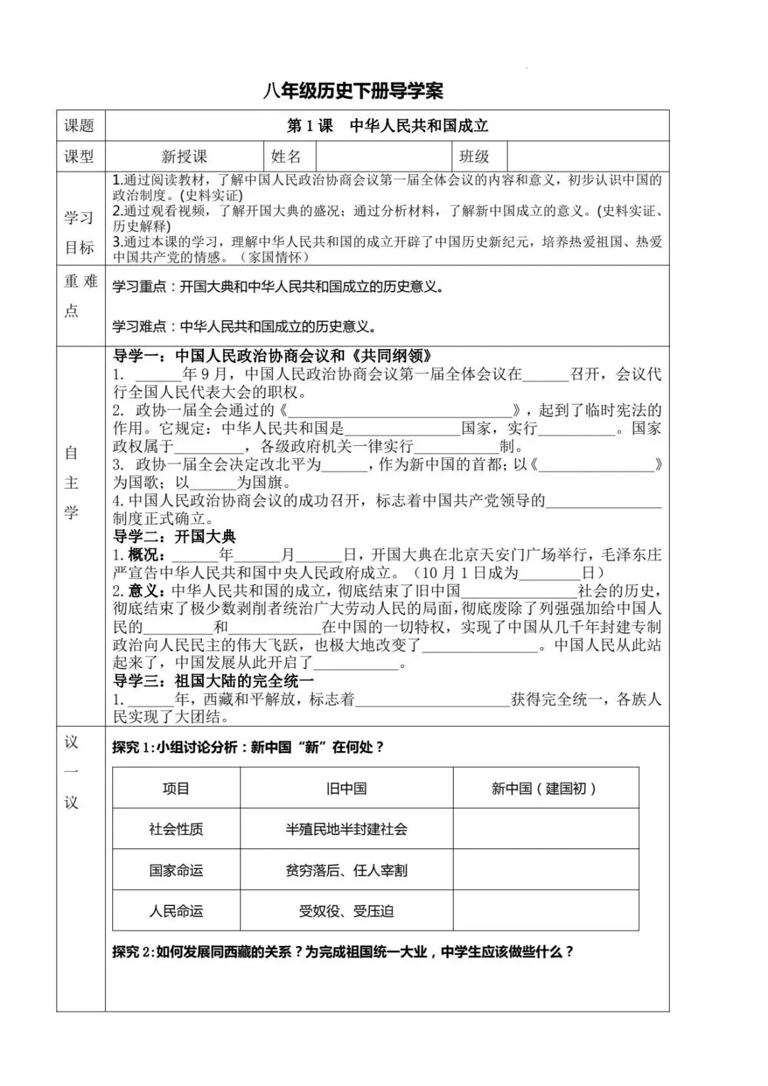 2026年春八下历史配套教案+课件ppt+导学案(多套)word版可编辑打印!