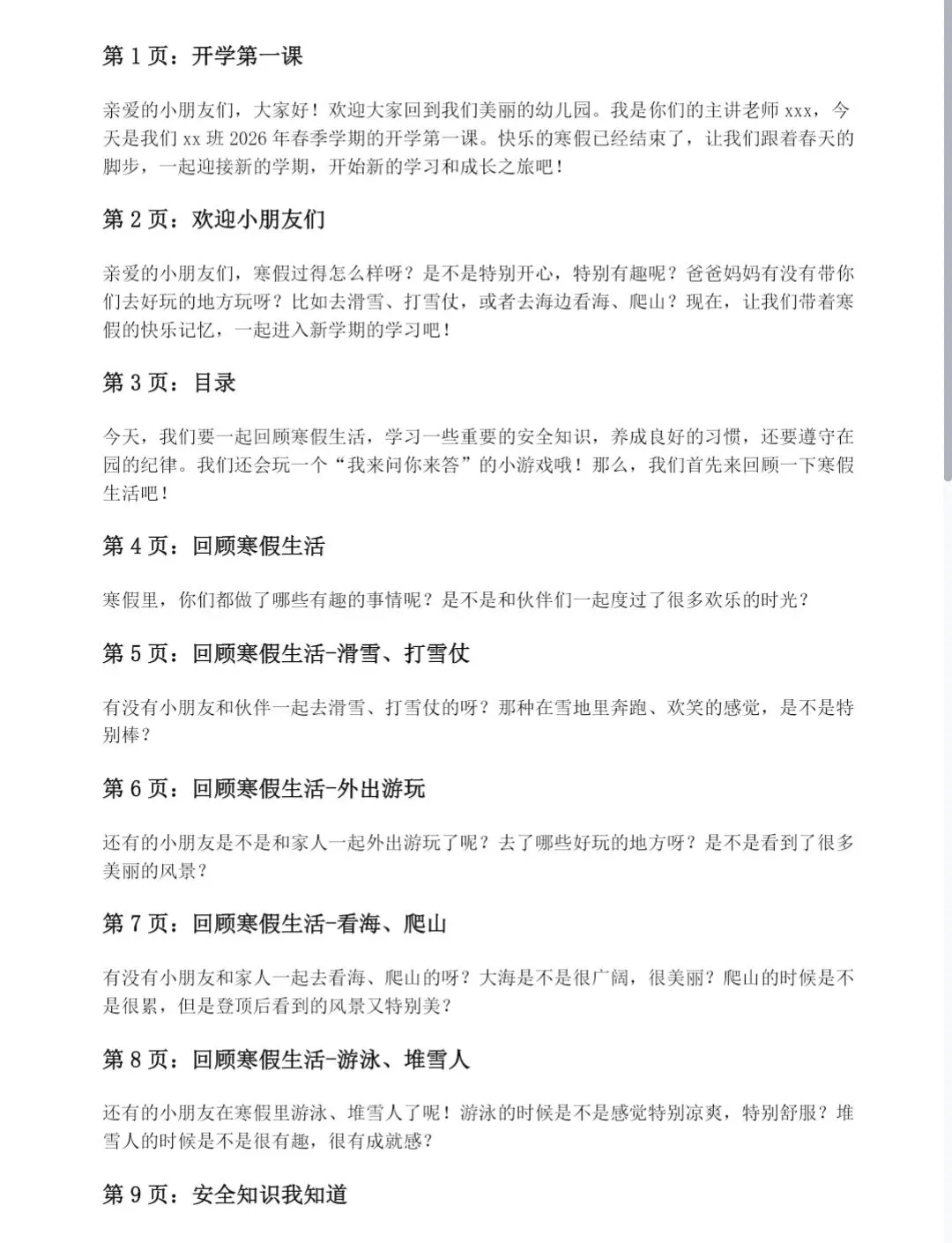 幼儿园班春季《开学第一课》ppt+教案+文稿