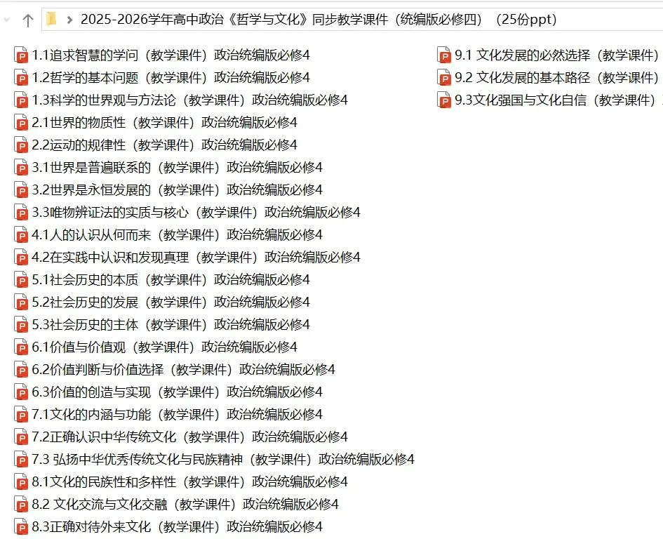 【2026年高中政治必修四】同步教学课件25份ppt(全部完整电子版文档文末有下载方式)