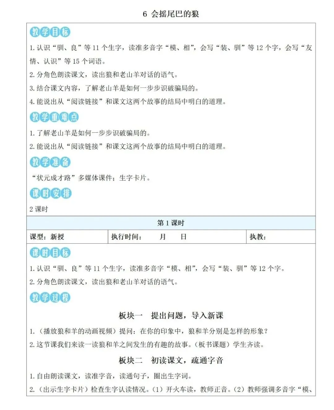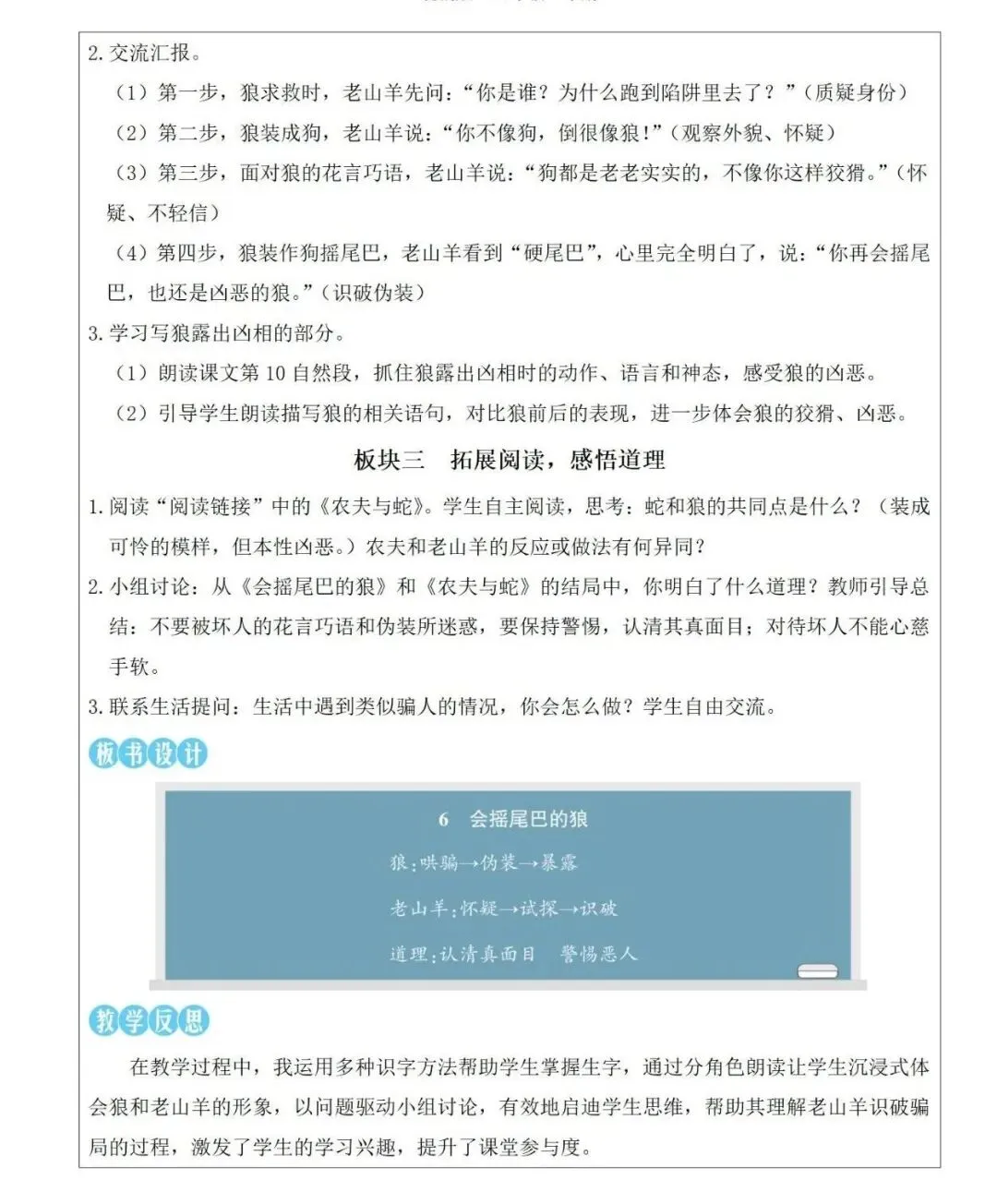 以《会摇尾巴的狼》教案为例进行展示: