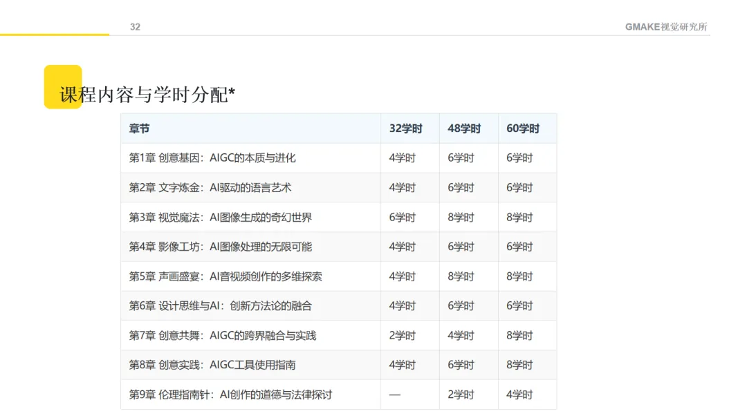 课程可根据各院校情况进行灵活调整,内容从AIGC基本概念到具体应用,希望帮助学生建立对AI辅助设计的基本认识。