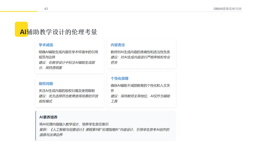 同时,需要特别注意AI生成内容的审核问题。教师对教学内容的准确性和适当性负有责任,需要认真审核AI生成的内容,确保专业准确性和教学适用性。此外,也需关注版权和伦理问题,确保AI辅助教学在合法合规的框架内进行。