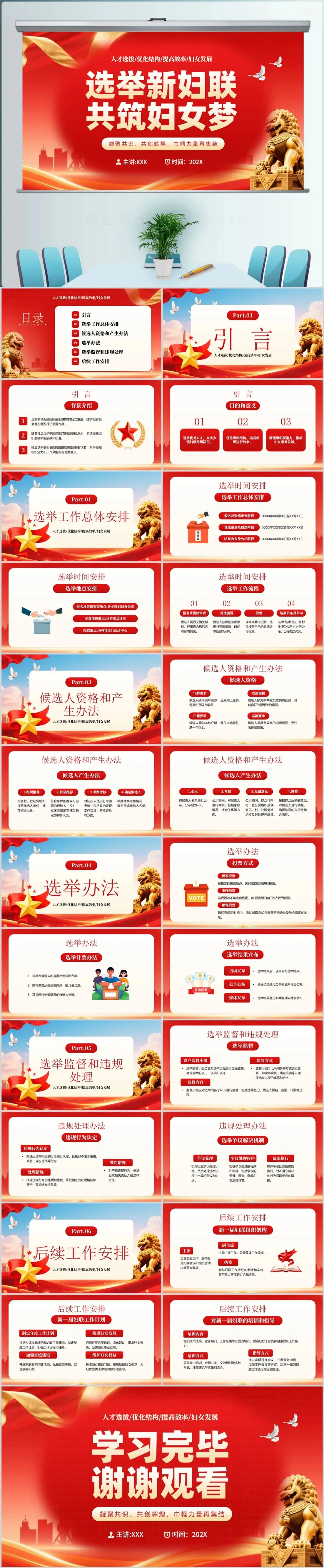 【PPT】红色选举新妇联共筑妇女梦培训课件三八妇女节