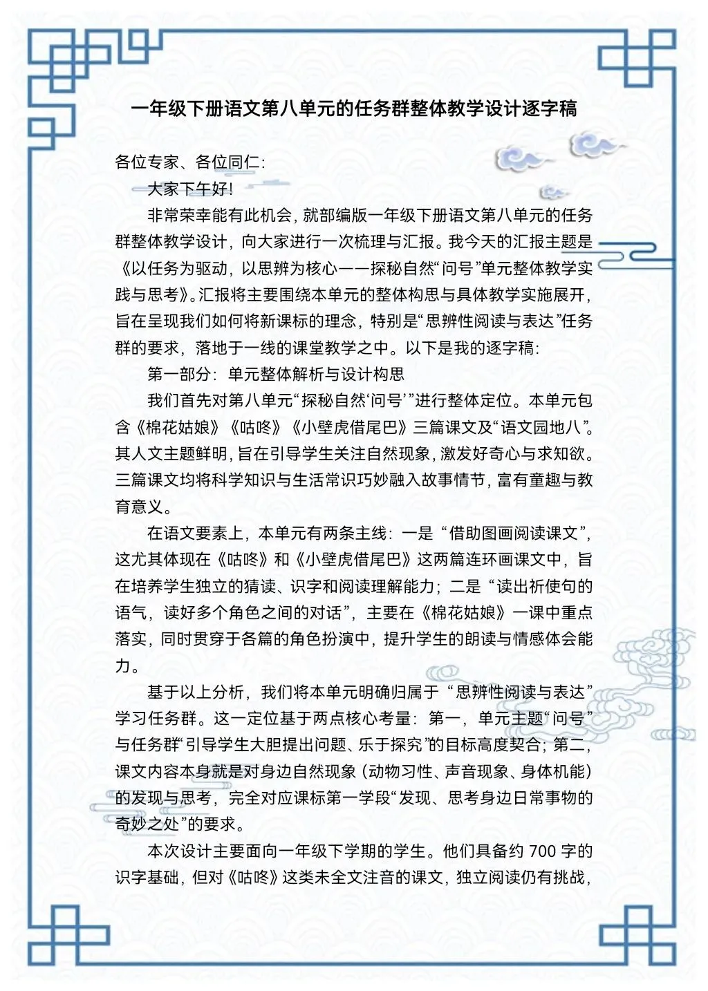 2026新一年级下册第八单元大单元解读课件+发言稿+大单元教学设计