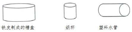 (1)拿出准备好的圆柱、圆锥形物体(可以用橡皮泥捏)。