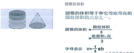 利用这一关系推导出圆锥的体积:V锥=v=1/3sh