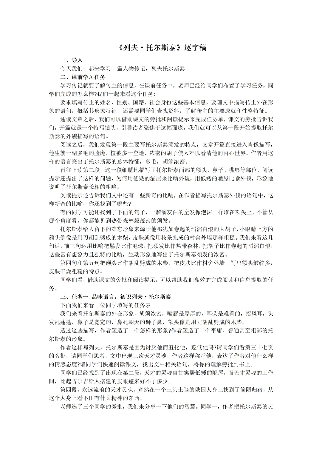 单篇获取课件+教学设计+逐字稿