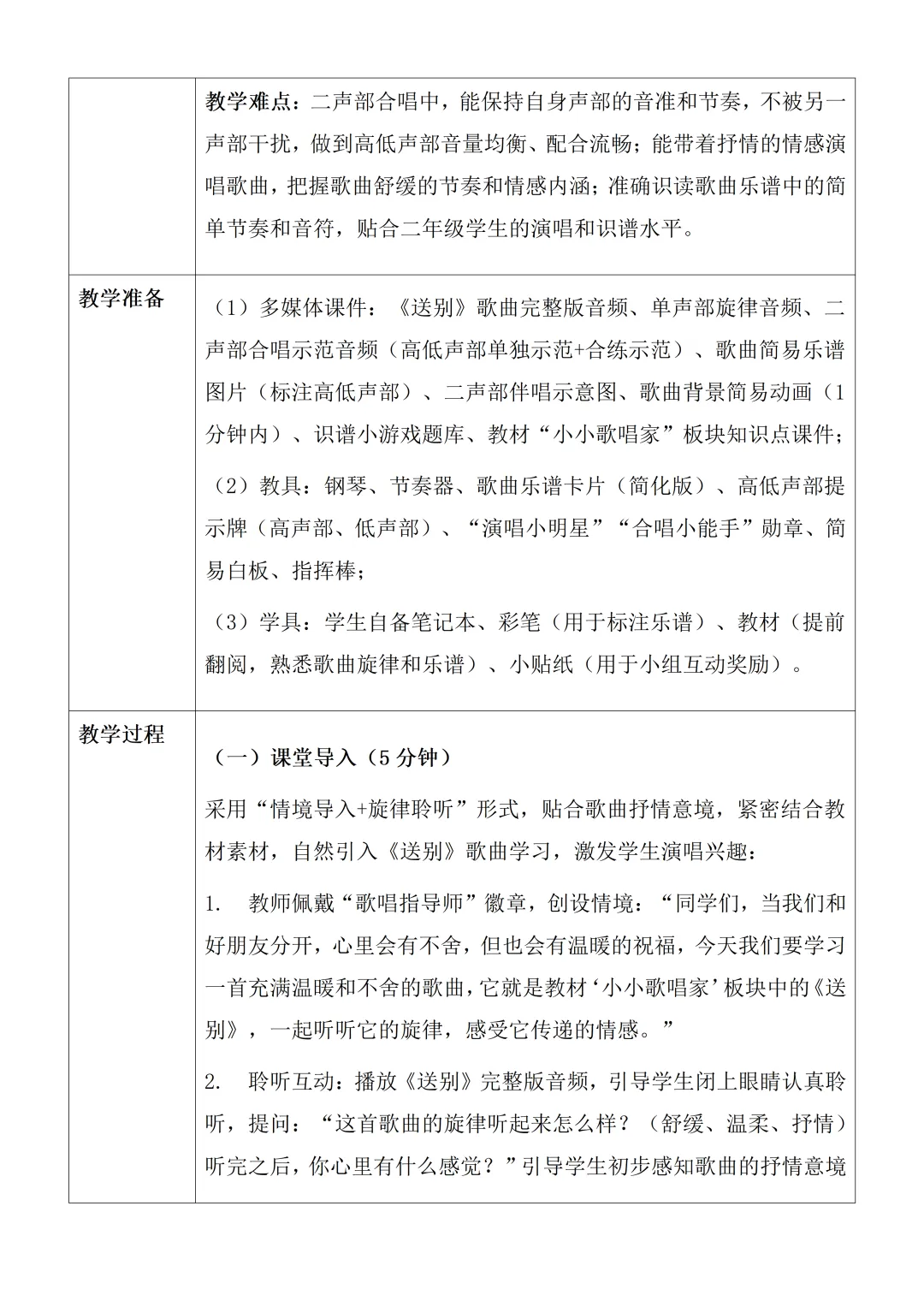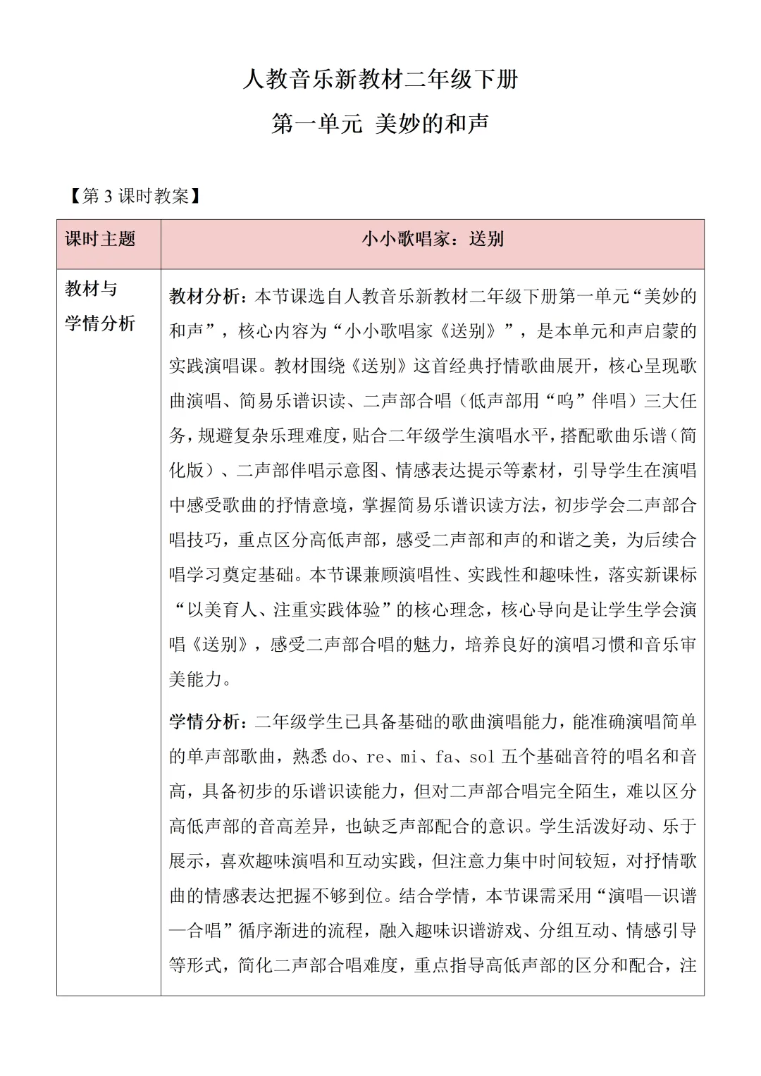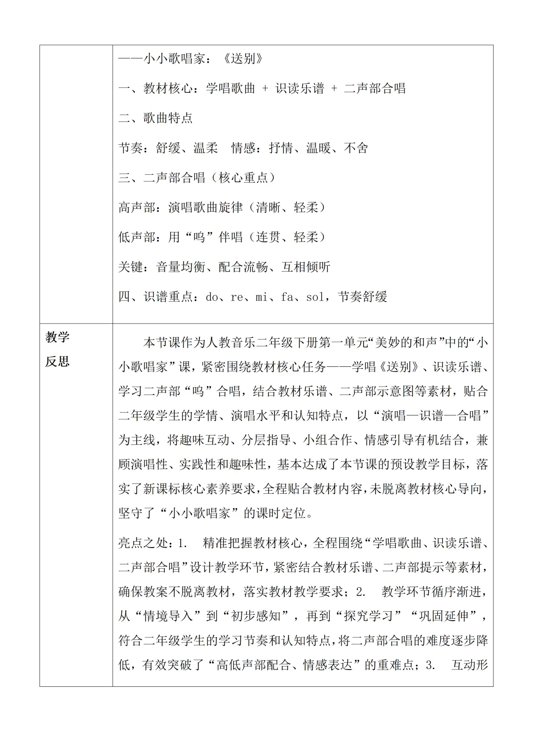 新教材 人教版 音乐二年级下册核心素养教案含反思