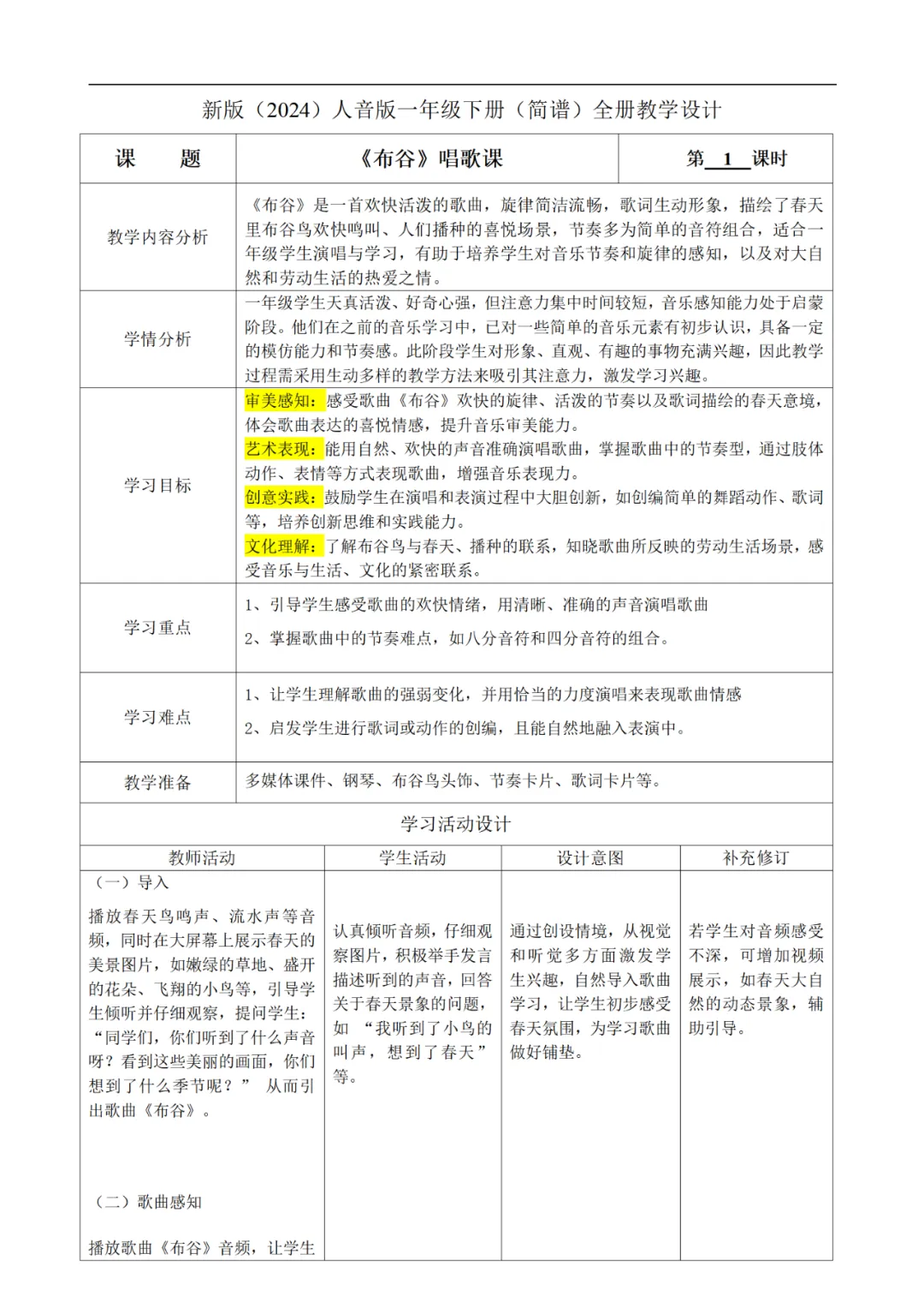 2025春(新教材)多版本音乐艺术唱游一年级下册高清课本