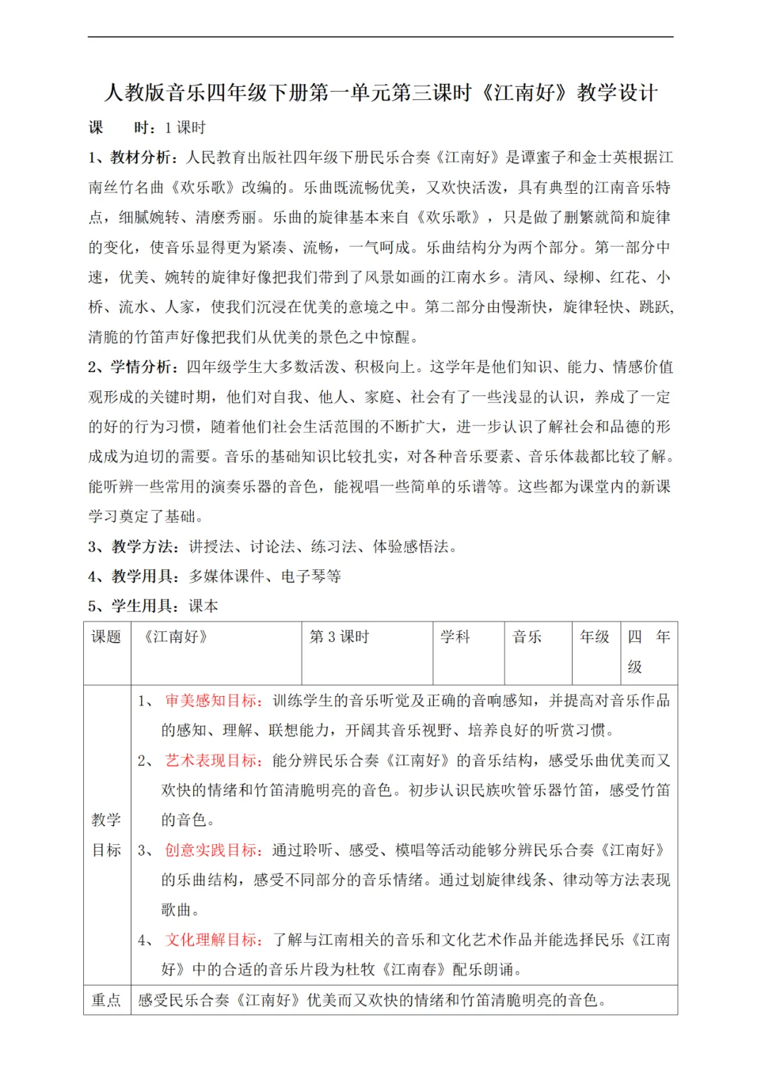 小学音乐四年级下册(人教版)核心素养教案+PPT课件,可下载编辑!