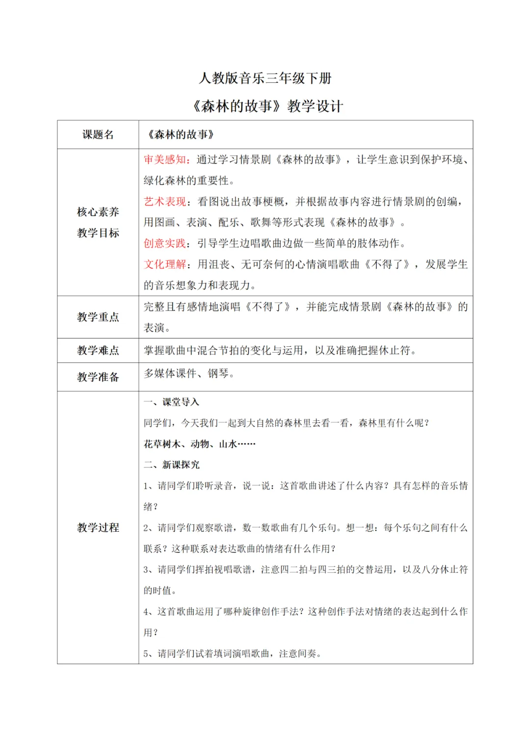 新改版 音乐三年级下册核心素养教案含反思(人教版26春),可下载编辑!