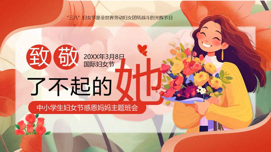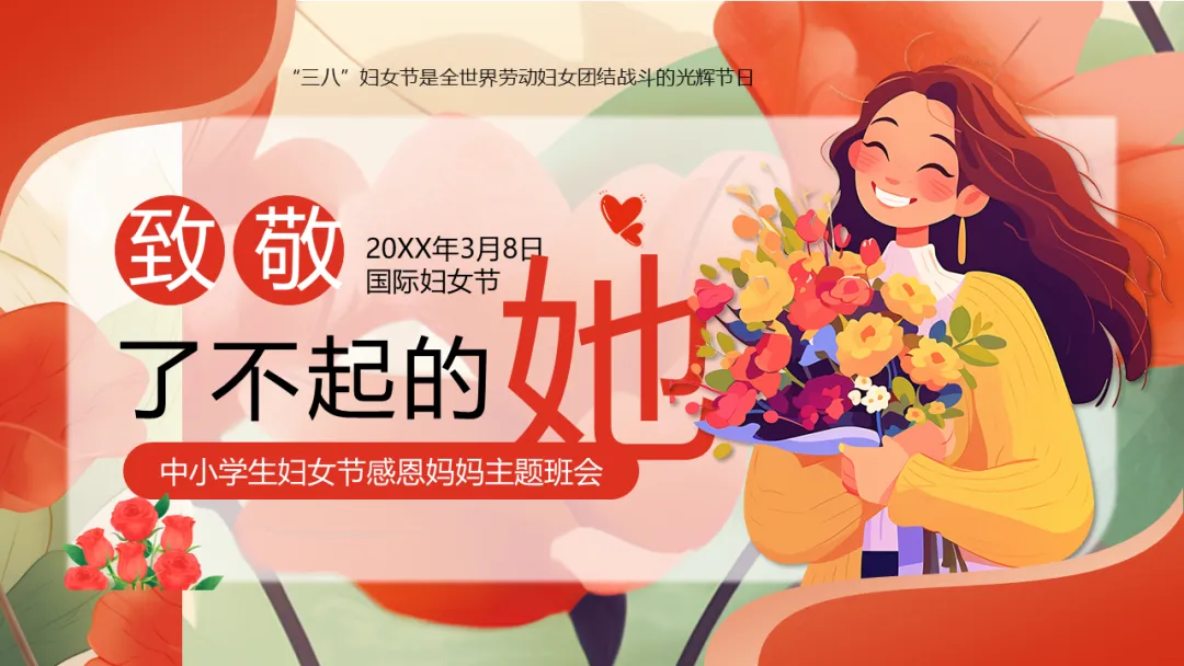3月8日国际妇女节主题班会PPT课件,三八妇女节,致敬了不起的她