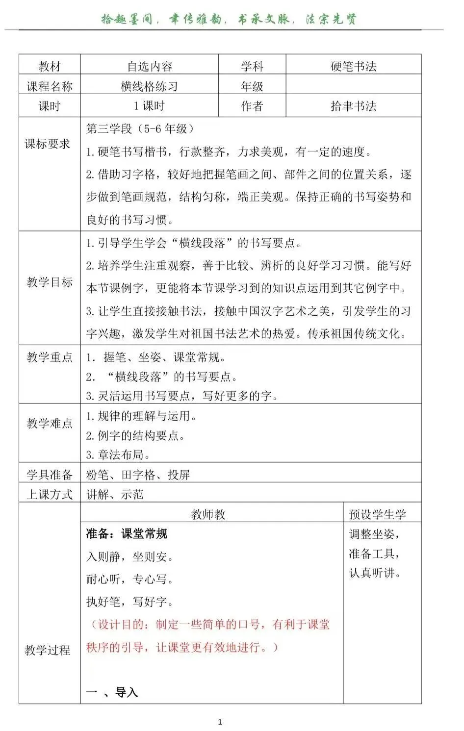 >5年级硬笔书法课——横线格训练(课件|教案|练习单)高效提高日常书写