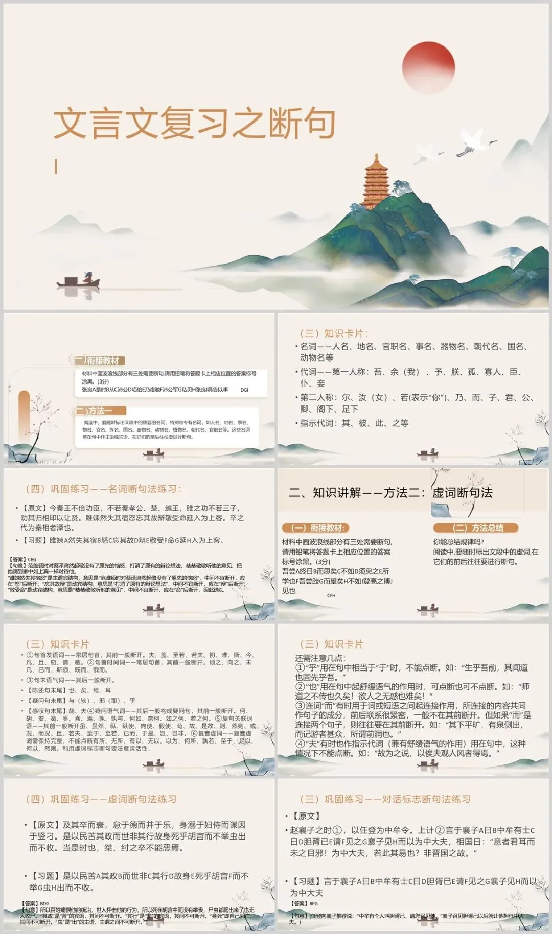 断句课件每一个断句方法都有衔接教材,从课内延伸到课外,还有巩固练习,非常实用,帮助学生轻松掌握断句方法。
