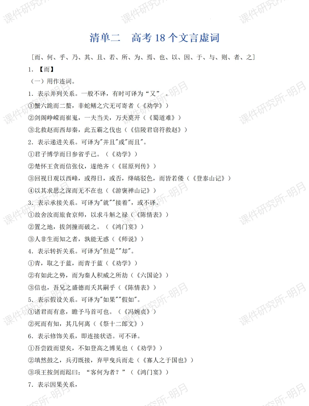 专题01 文言文断句(附练习题) 专题02 文言文实词(附知识清单小练习) 专题03 文言文虚词(附知识清单小练习) 专题04 文言文词类活用(附练习题) 专题05 文言文特殊句式(附练习题) 专题06 文言文翻译(附练习题) 专题07 文言文速选选择题(附练习题) 专题08 文言文主观题(附练习题) |
