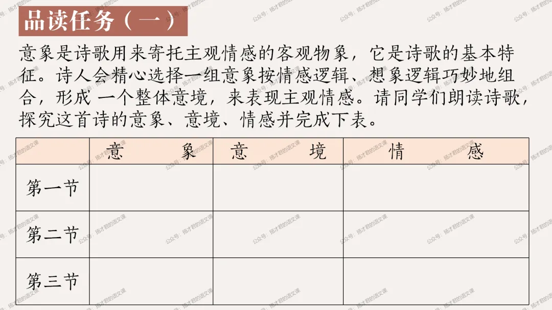3.品读诗歌,把握诗歌的意象、意境以及情感;