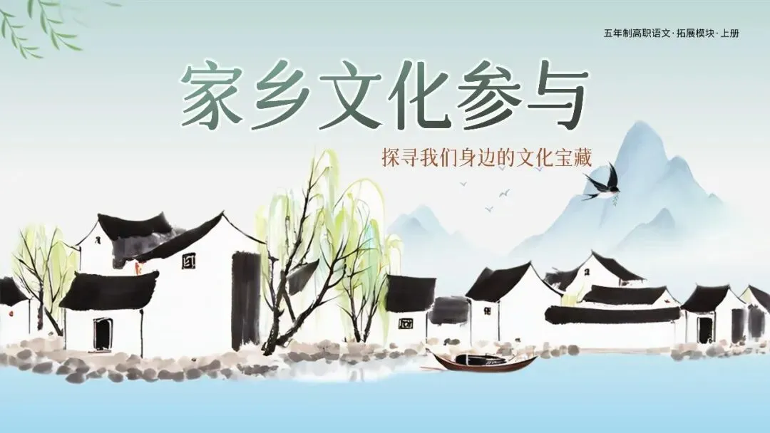 本期更新的课件为统编高教社版五年制高职语文拓展模块上册第五单元《家乡文化参与》,共16页。