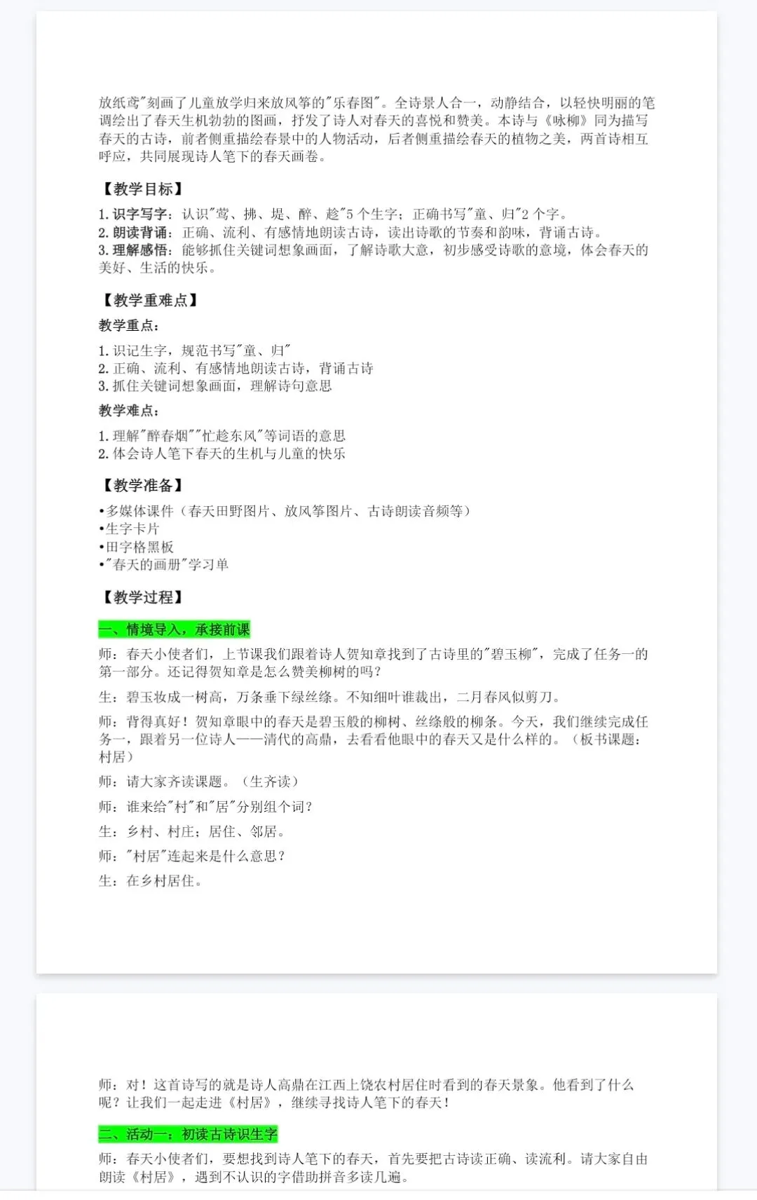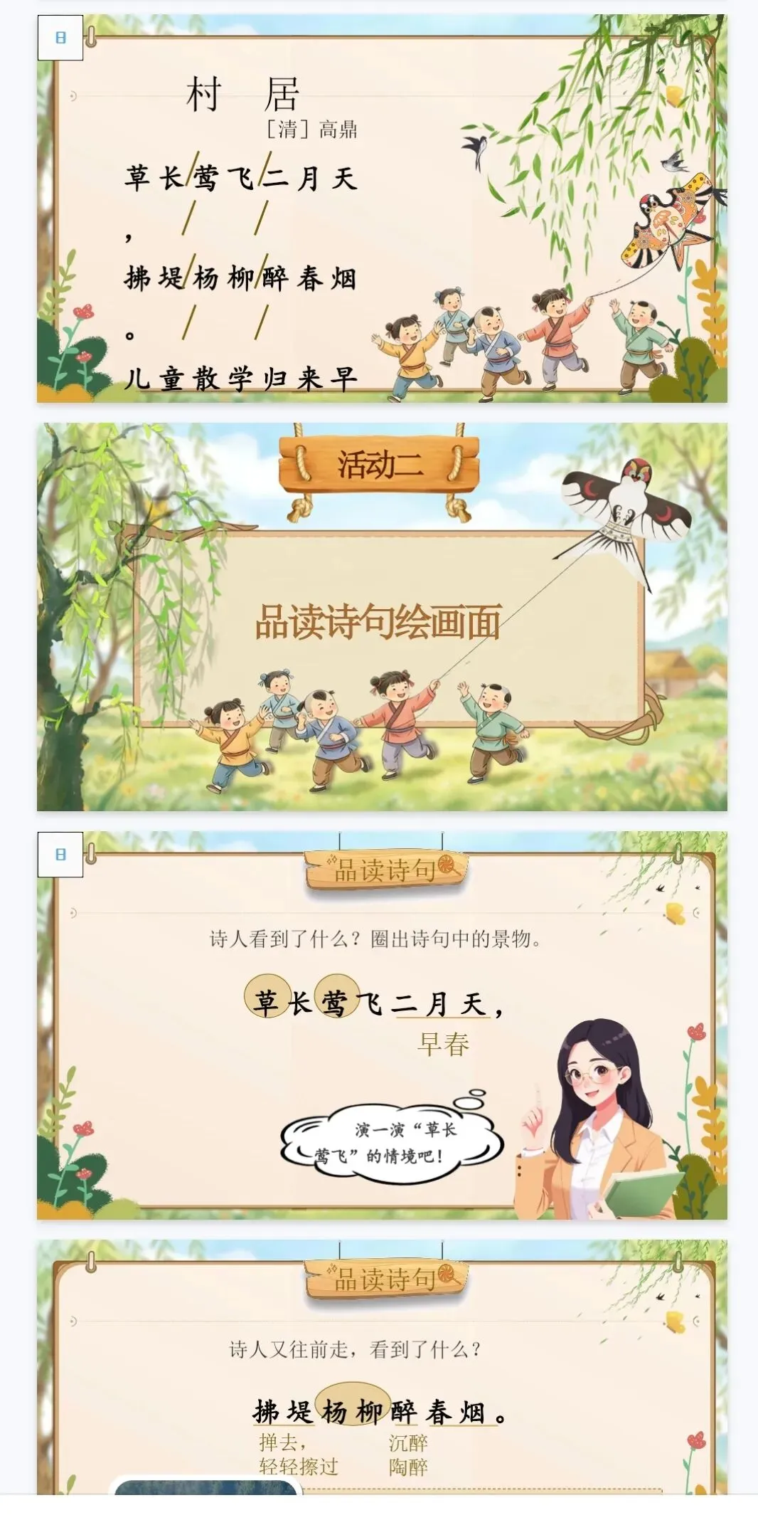 当前位置:首页>课件>【精品课件】二年级下古诗二首《村居》课件+教案