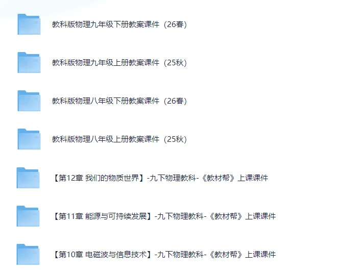 26春教科版物理8-9年级上下册教学资源包里有与新教材配的教案、课件、练习题、教学计划总结、作业课件等。