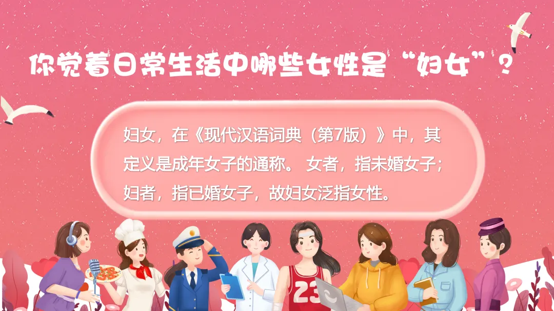 (三)她本来就很美 提问互动: 提问:“你认为日常生活中哪些女性是‘妇女’?”引导学生思考“妇女”的定义。 提问:“你认为什么才是美?”引导学生讨论美的标准。 教师总结: 引用《现代汉语词典》对“妇女”的定义,明确“妇女”泛指成年女性。 强调美是多元的,拒绝容貌焦虑,美丽无关年龄,美需要自己定义,美丽不止外在。女性可以成为任何她想成为的样子。 | 通过提问和讨论,打破学生对“妇女”和“美”的刻板印象,引导学生树立正确的审美观和价值观,认识到女性的美是多元的、独特的。 | ||