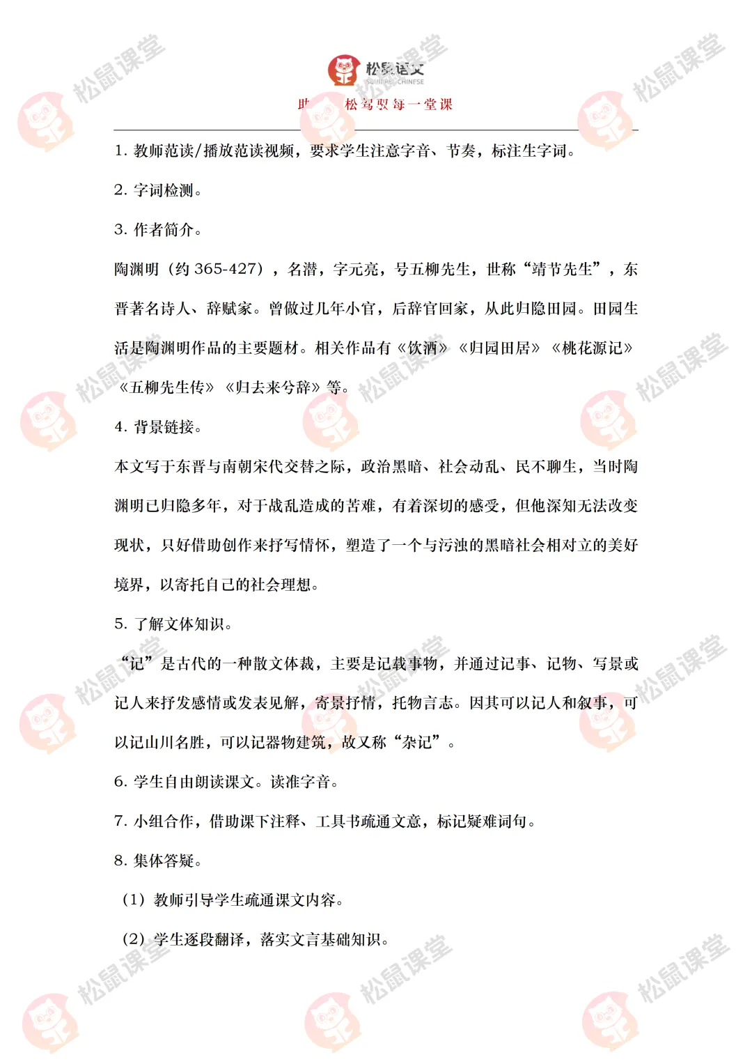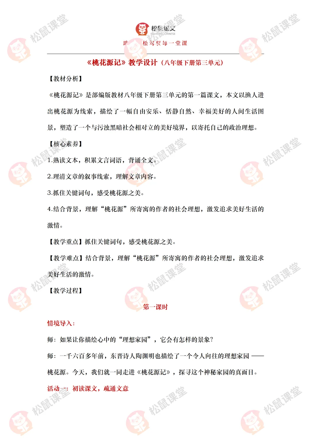 「开学第一课」八下第三单元《桃花源记》课件+教学设计