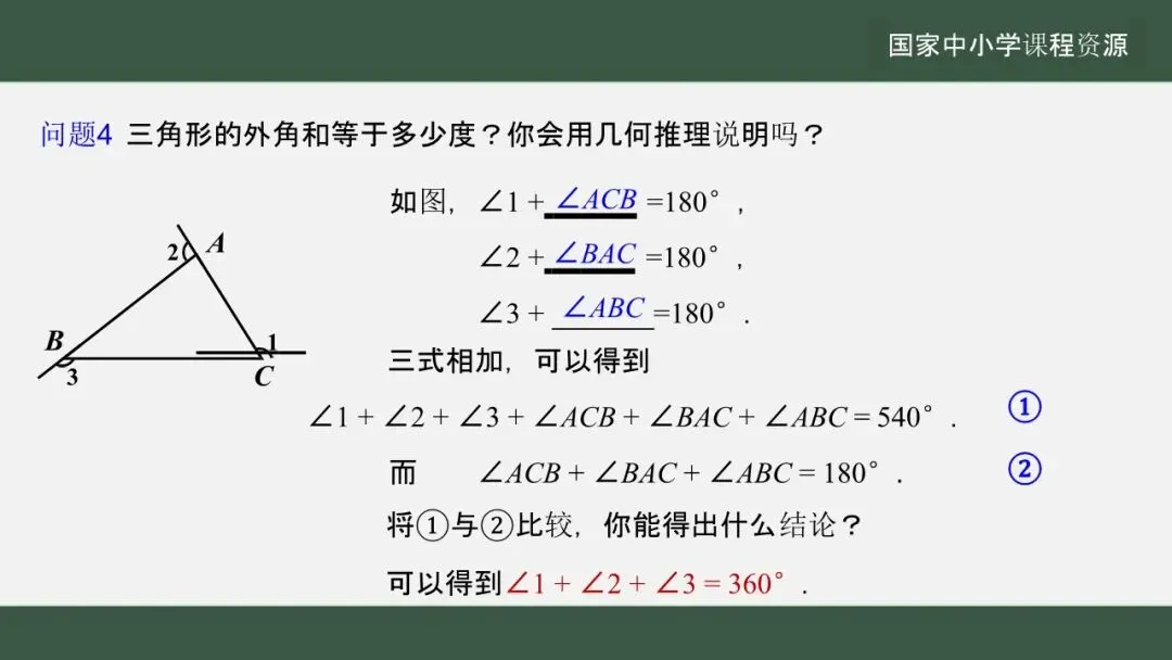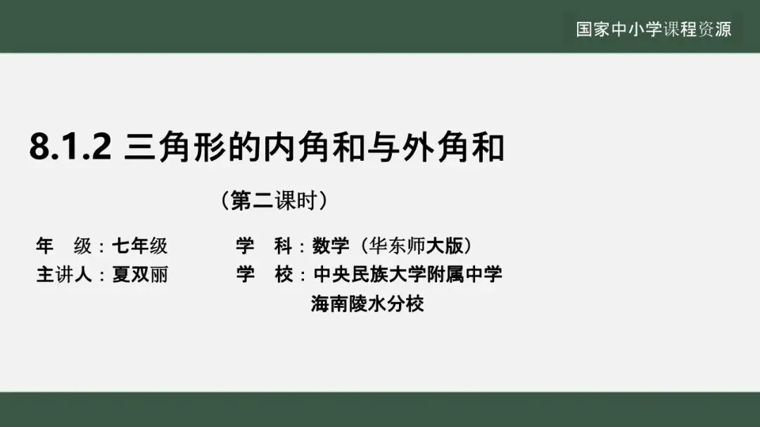 当前位置:首页>课件>【教学课件】(新教材)华师大版初中数学七下《8.1.2.三角形的内角和与外角和》第2课时