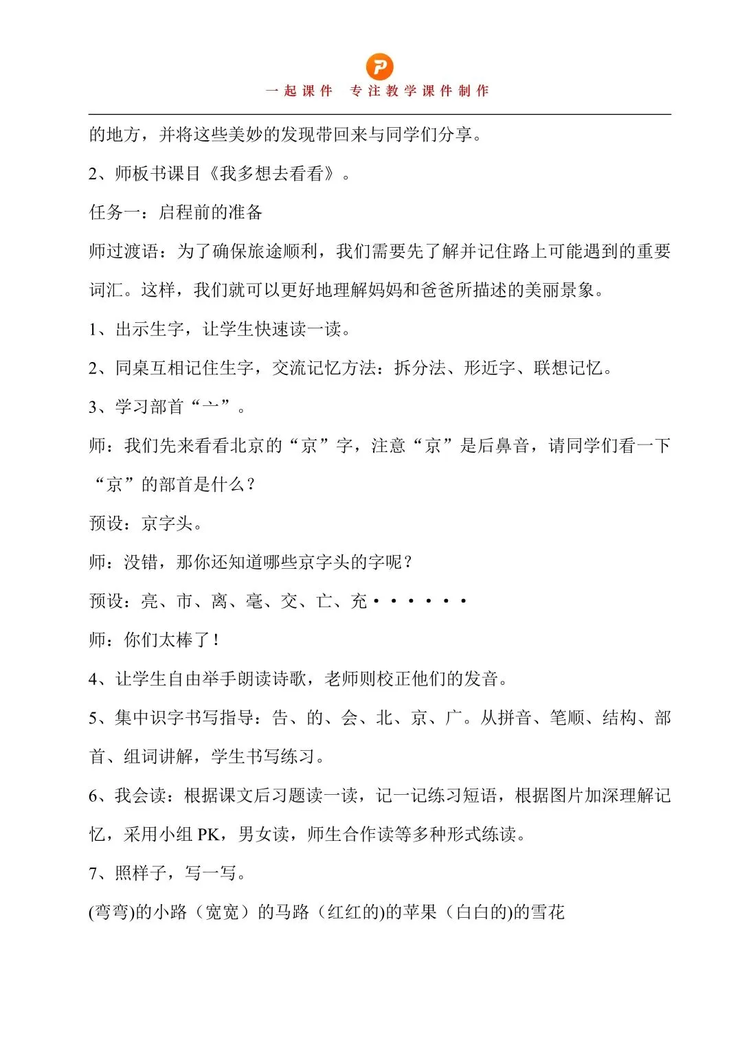 >一下第二单元《我多想去看看》 | 教学课件+教案+逐字稿