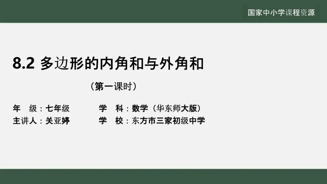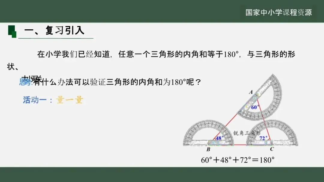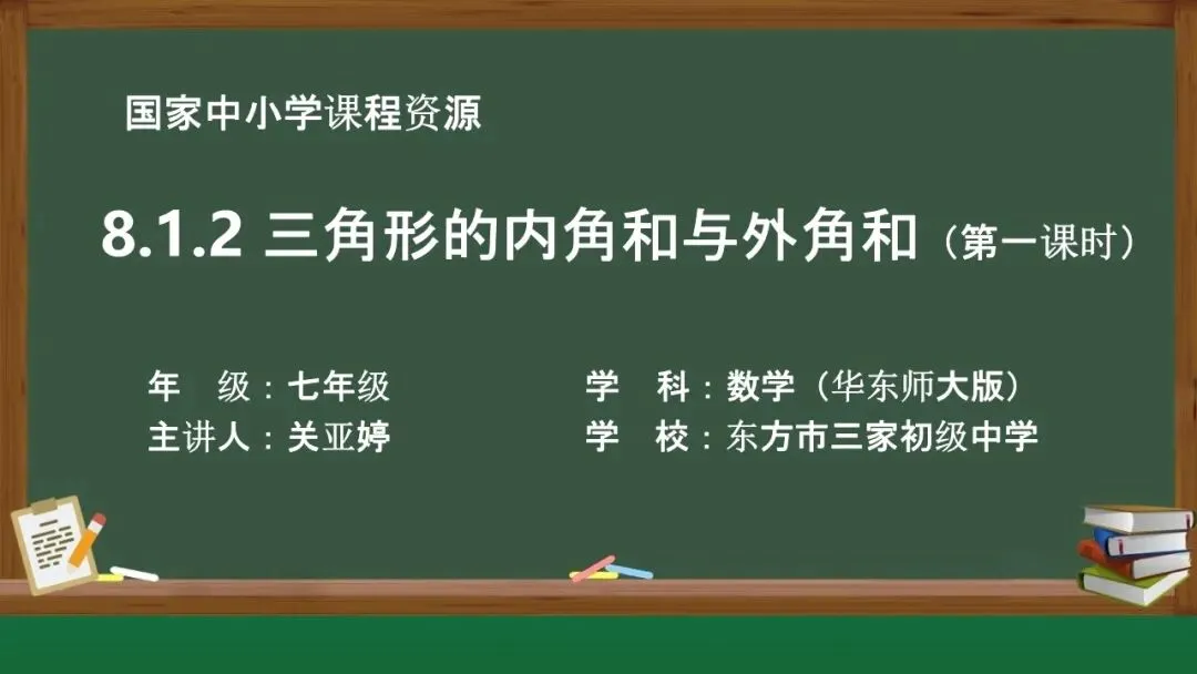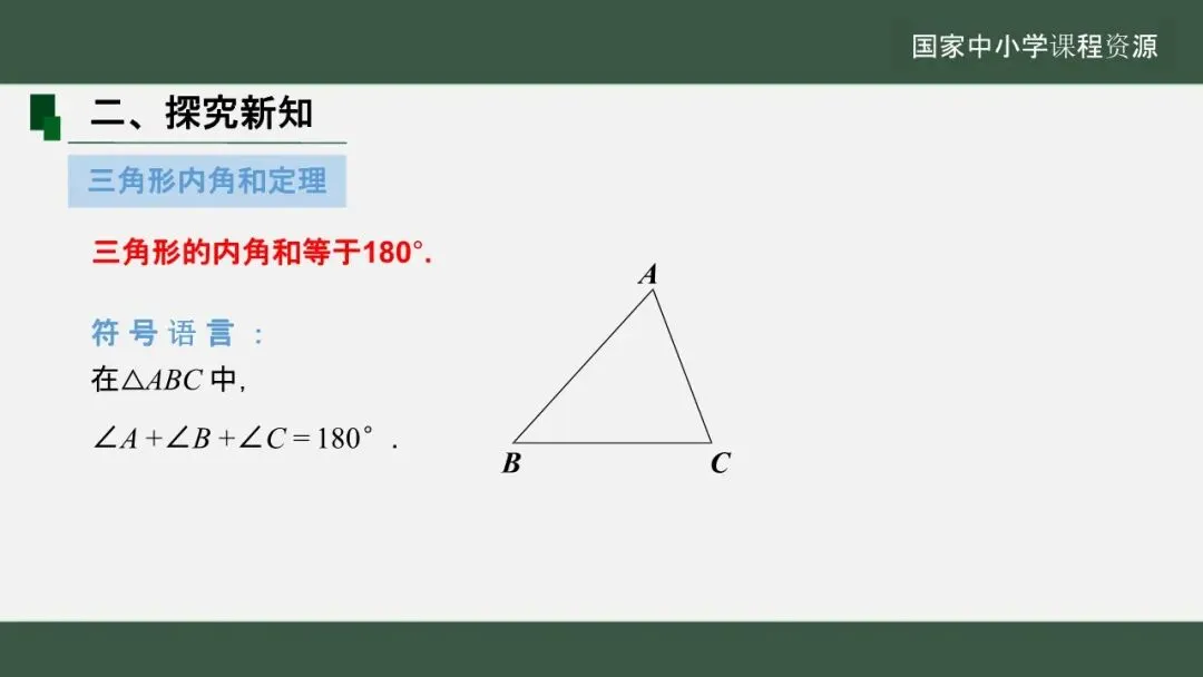 当前位置:首页>课件>【教学课件】(新教材)华师大版初中数学七下 《8.1.2.三角形的内角和与外角和》第1课时