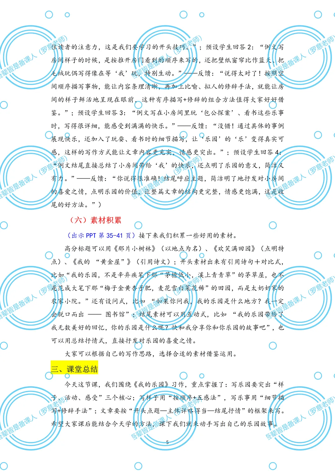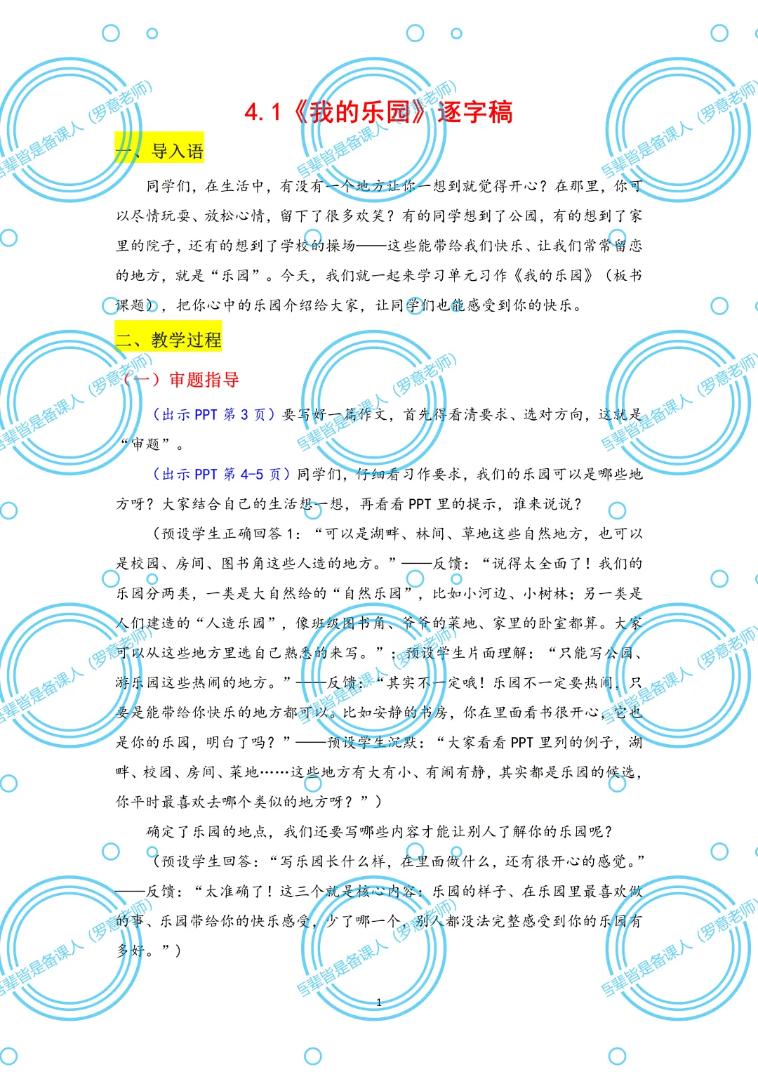 各位老师好,我是吾辈皆是备课人(罗意老师),如需有偿获取(9.9元)这份《我的乐园》课件(9.9元包含可编辑课件+教案+逐字稿+学习单+范文),可添加我的微信:XBYW9550008882,备注“作文课件”即可。资料均为原创,持续更新。