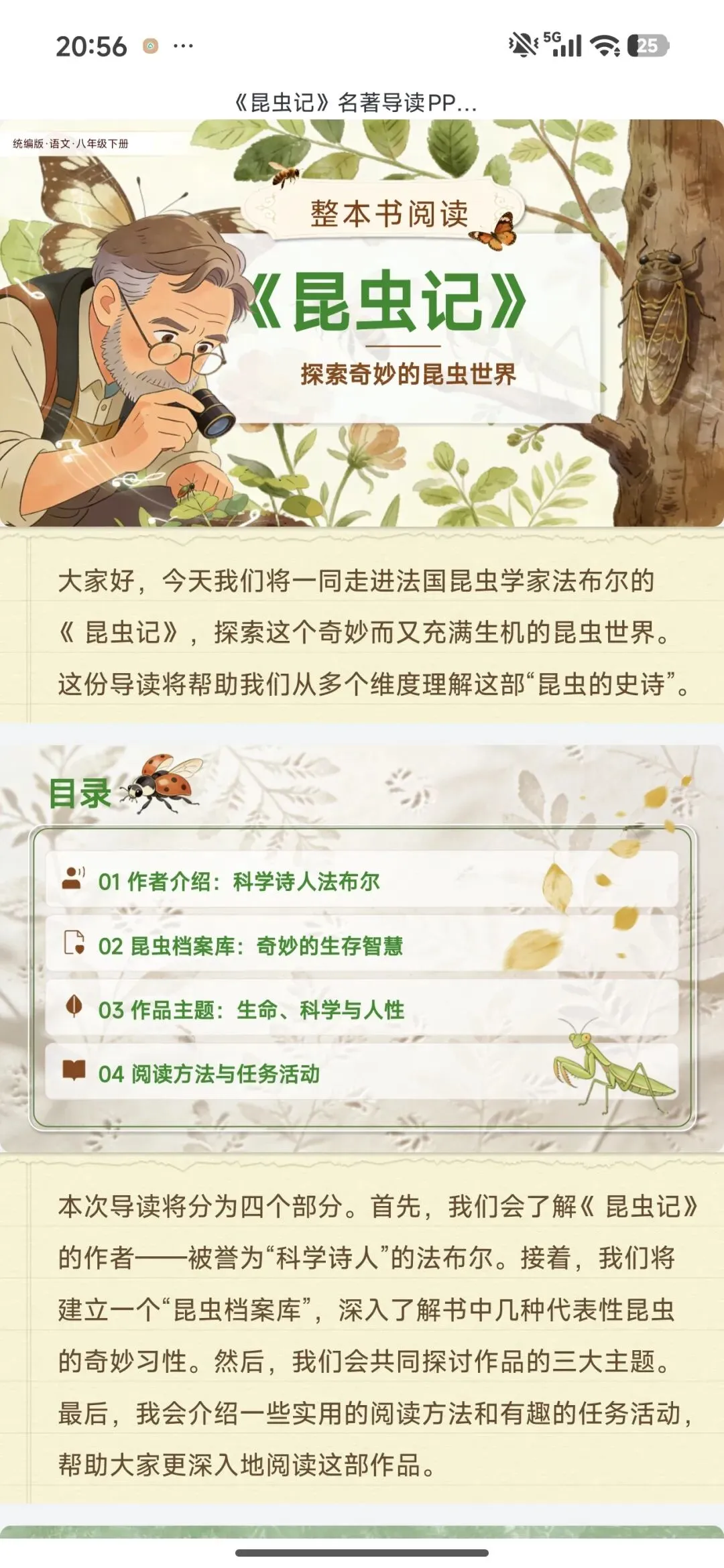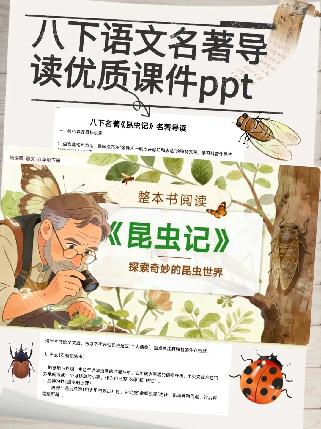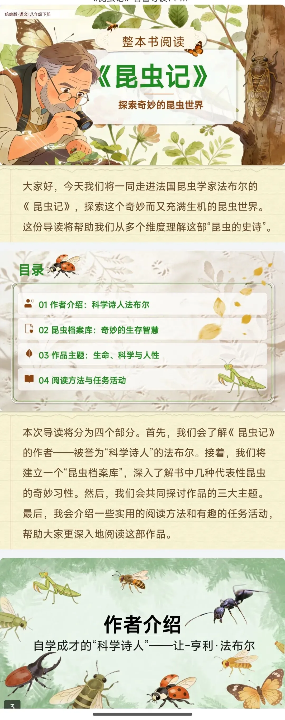 注意!八下名著导读《昆虫记》优质公开课课件ppt|18种昆虫全梳理,考点、活动、对比一键拿捏|中考名著《昆虫记》复习教学设计