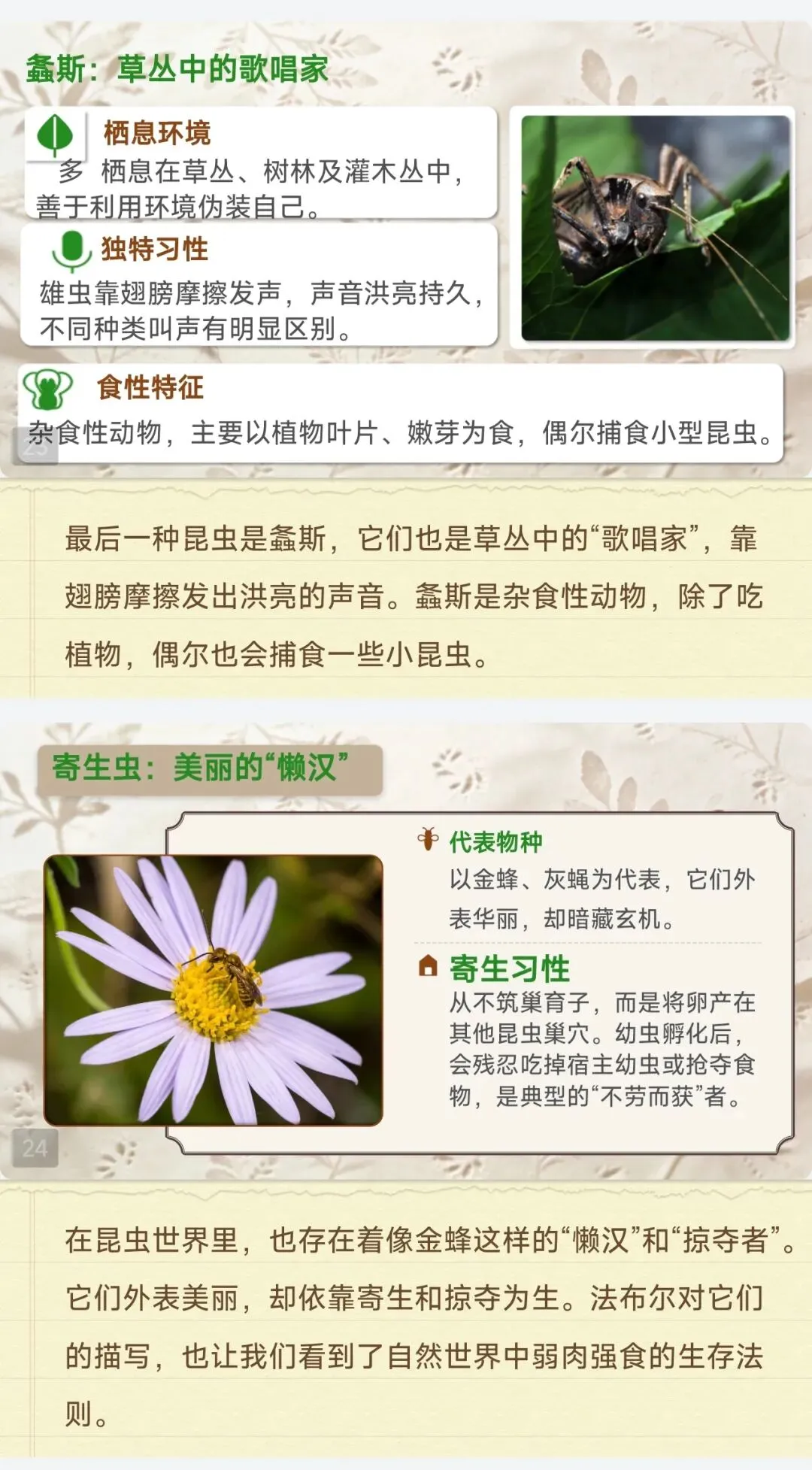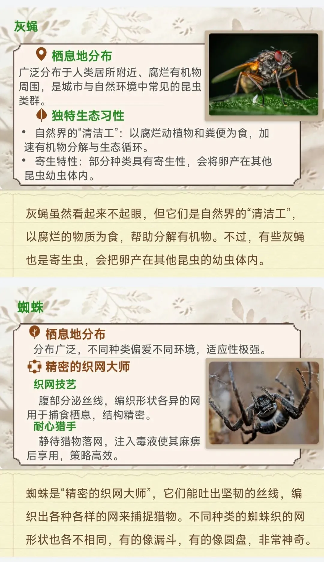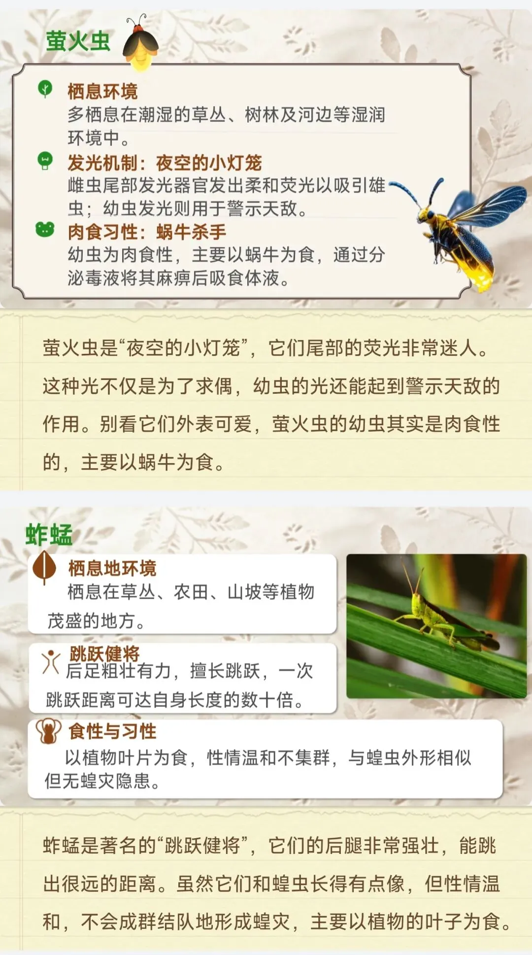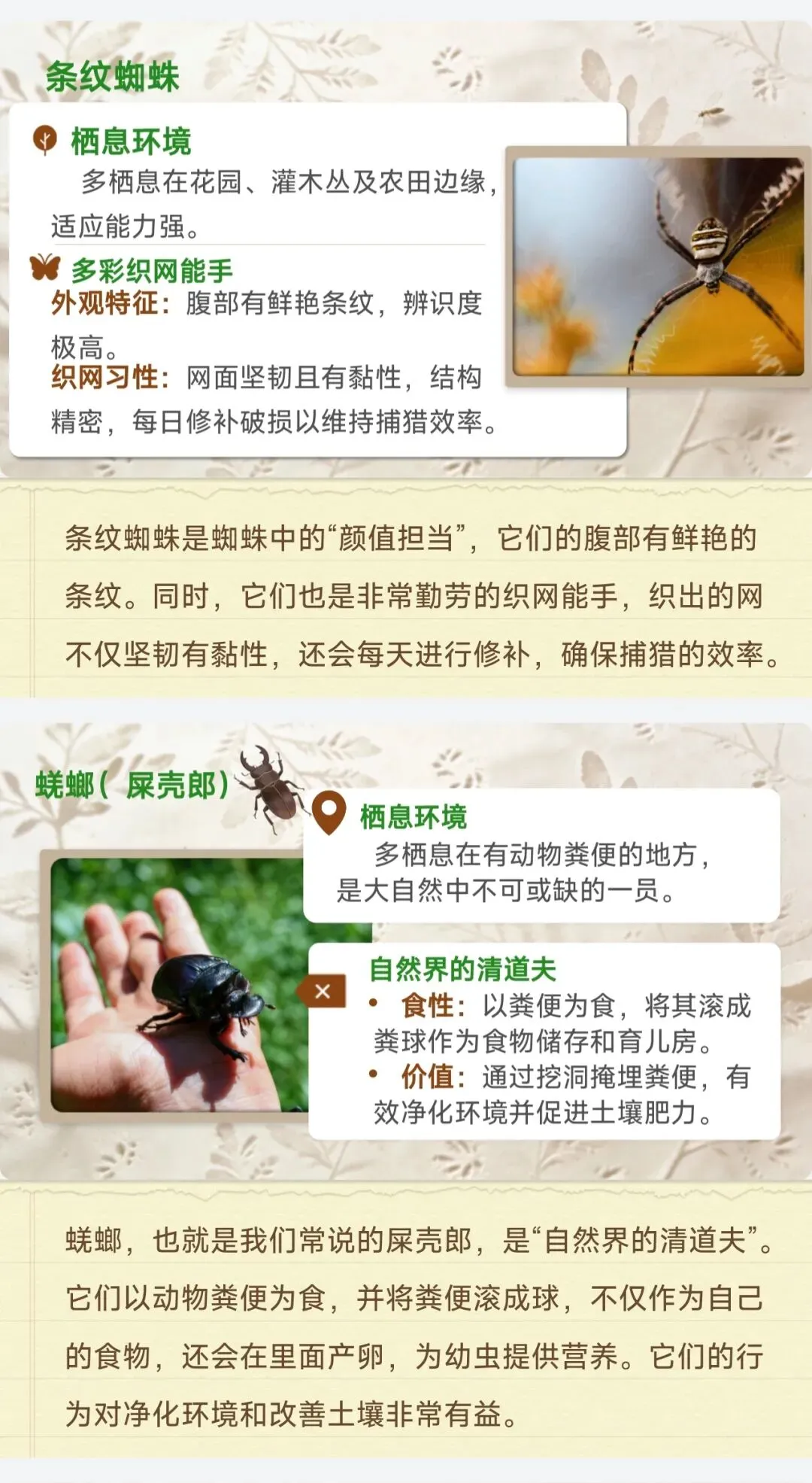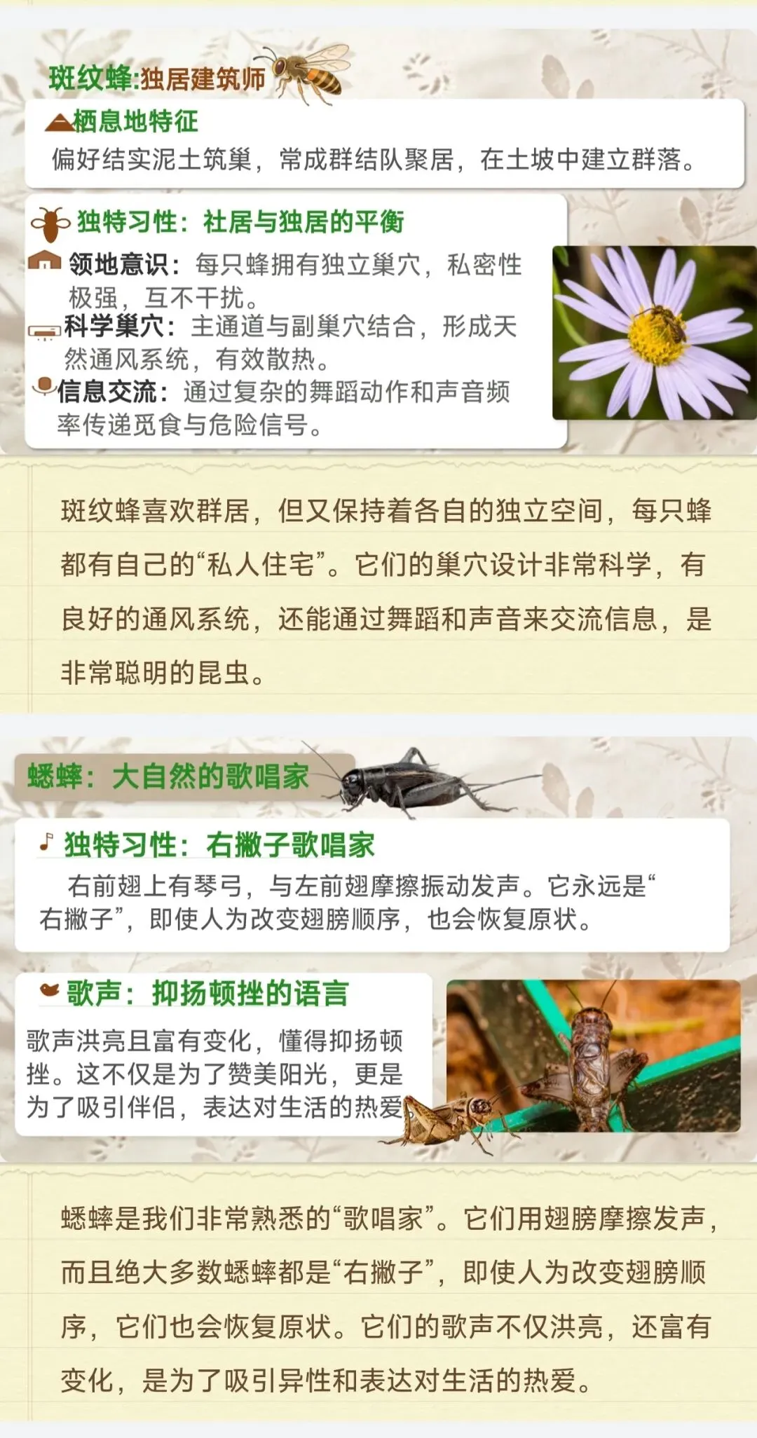 ✅18种核心昆虫全档案:石蚕、螳螂、蝉、蜣螂等中考高频昆虫,栖息地、独特习性、生存智慧逐一拆解,每个昆虫标注考点重点,学生一看就懂,不用再翻书找细节!
