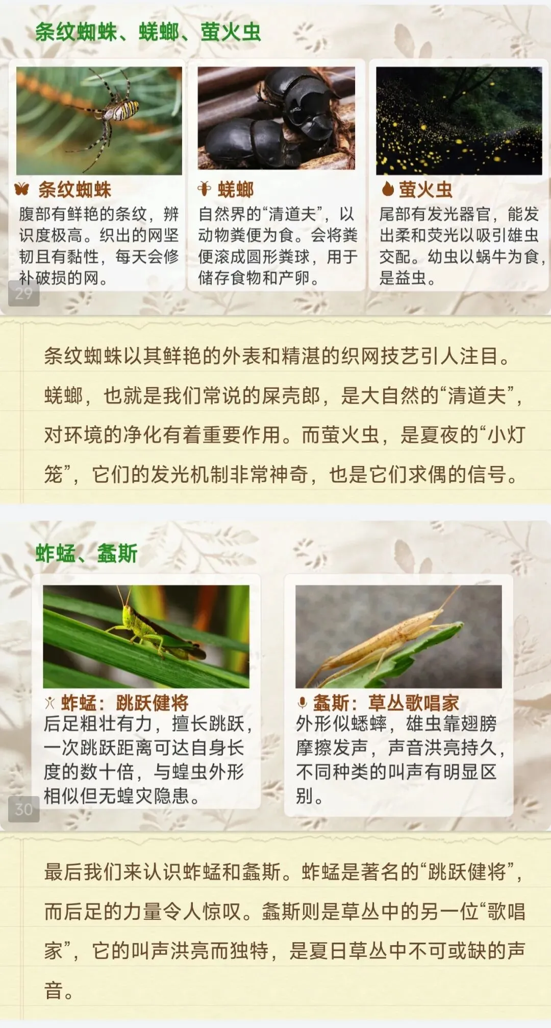 ✅易混昆虫对比表:螳螂vs蟋蟀、蝗虫vs蚱蜢、蜘蛛vs条纹蜘蛛等6组易混淆考点,从习性、特点、考点角度清晰区分,帮学生避开答题易错点,考场不丢分!