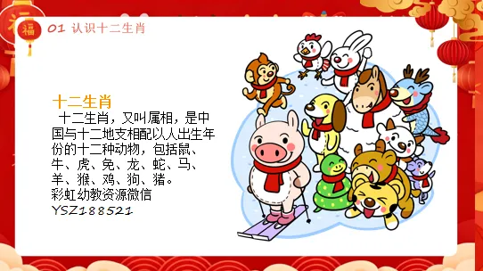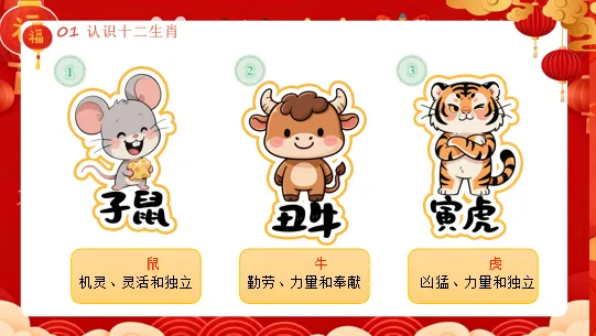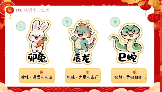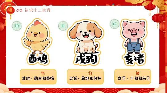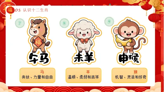 感受十二生肖文化的乐趣,对传统民俗产生喜爱之情,乐于参与生肖相关的互动活动。